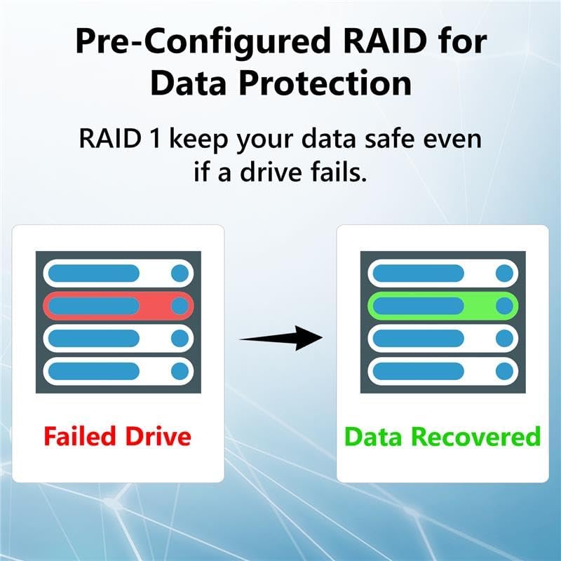 - 4 TB Total Capacity β 2 Drive Bays ships with RAID 1 (Automatic Backup) = 2 TB usable capacity. Set to RAID 0 to use the full 4 TB.