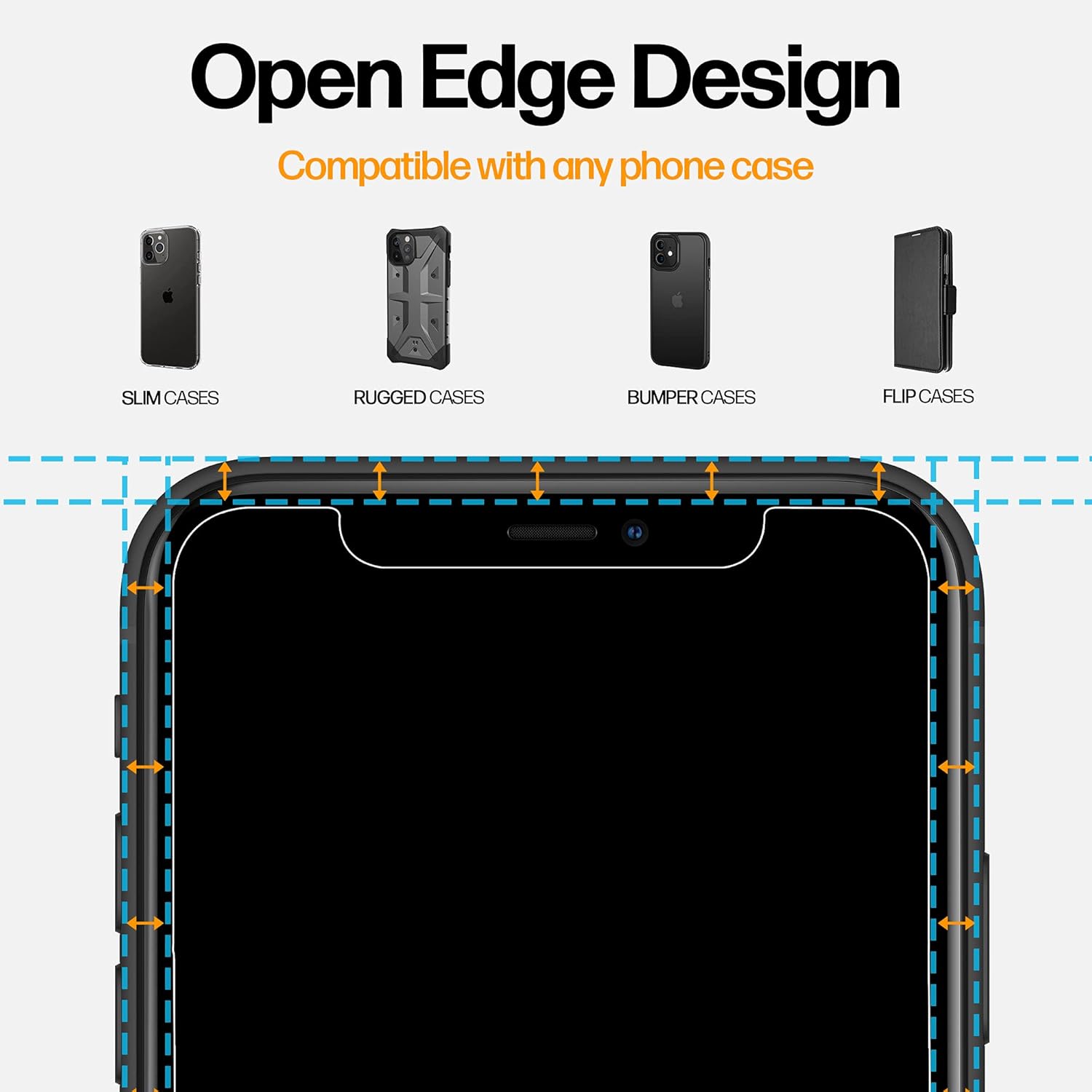 - CASE FRIENDLY FLAT DESIGN - Our tempered glass screen protector covers the flat portion of the screen only, leaving the curved edges free to fit your case better and reduce any non-adhesive white halo. Everything we do is designed to enhance your smartphone experience!