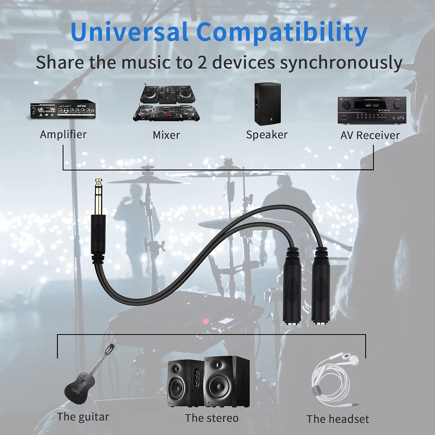 - [Wide Compatibility] The 6.35mm TRS male to dual 1/4 inch female stereo Y-splitter cable can be used as a headphone adapter to adapt one headphone jack to two headphones, compatible with microphones, headphones, amplifiers, AV receivers, karaoke, and other audio devices.