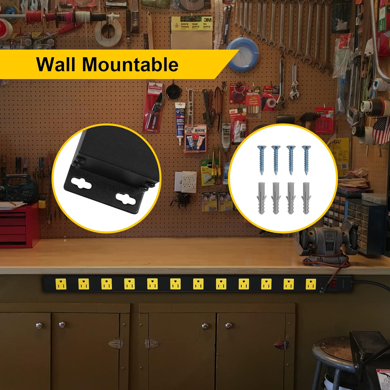 - Streamline Your Spaces: 32.68" power strip with 12 outlets spaced 2.25" apart for bulky plugs; 12-outlet power strip makes connections quick and easy; ideal for workshops, offices, and more; helps manage and organize cords