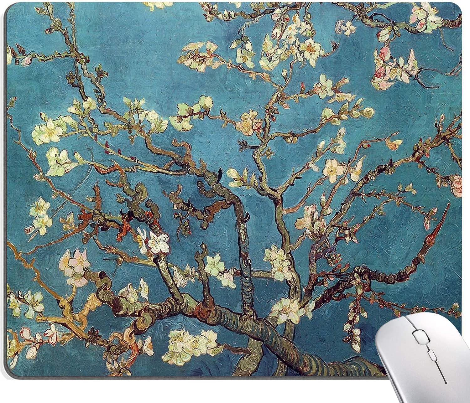 Almond Blossoms Van Gogh Mouse Pad, Oil Painting Flowers Mouse Mat, Square Waterproof Non-Slip Rubber Base MousePads for Office & Home Laptop
