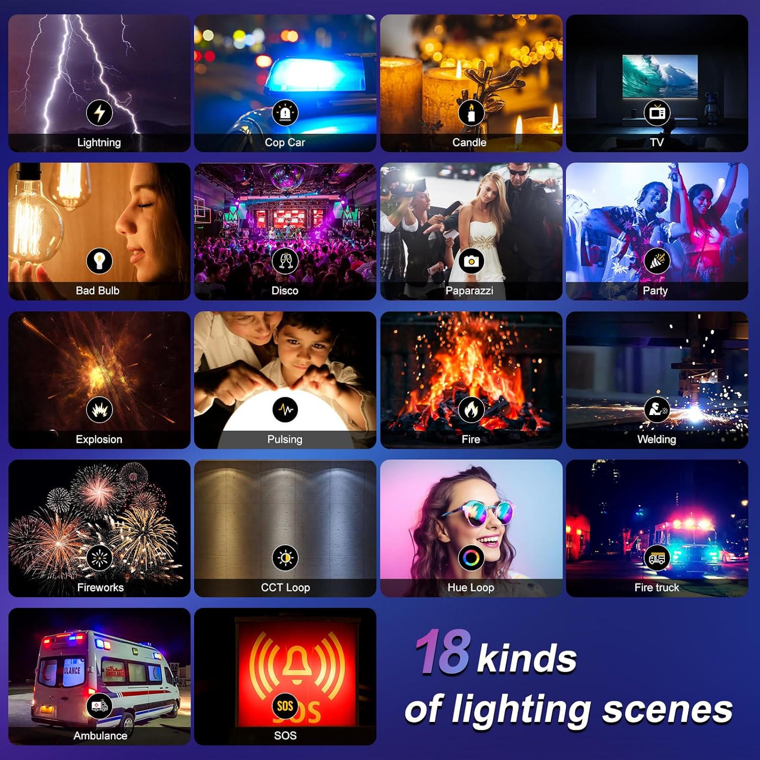 - Simulated Scene Modes: The video light simulates 18 types of scene lights. Enrich your shooting environment, including TV, candle, police car, lightning, paparazzi, nightclub, party, bad light bulb, etc. It saves a lot of time in editing and is more convenient for work.