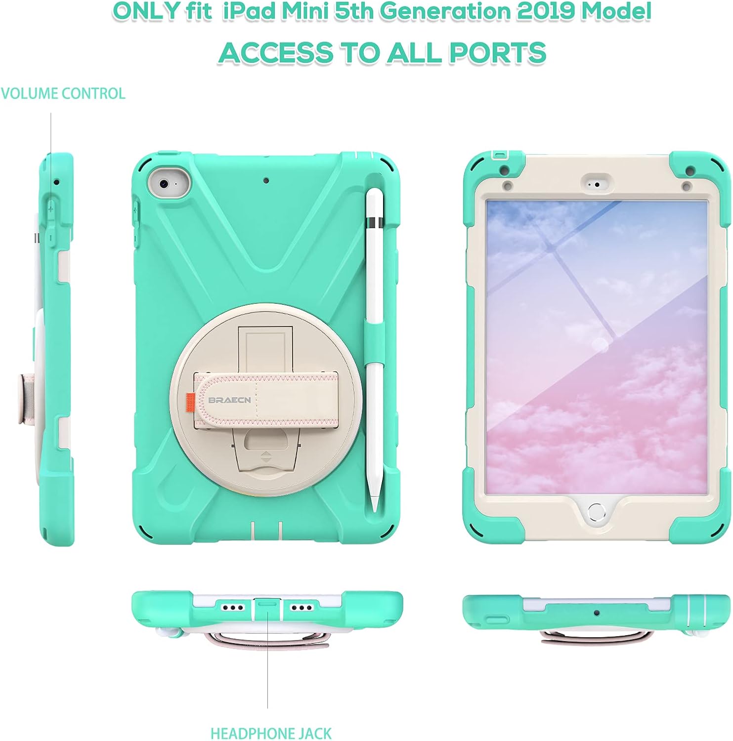 BRAECN iPad mini 5 Case,iPad mini 4 Case, Heavy Duty Shockproof Protective Rugged Case with Pencil Holder,Hand Strap,Kickstand, Shoulder Strap for iPad mini 5th/4th Generation 7.9 Inch for Kids