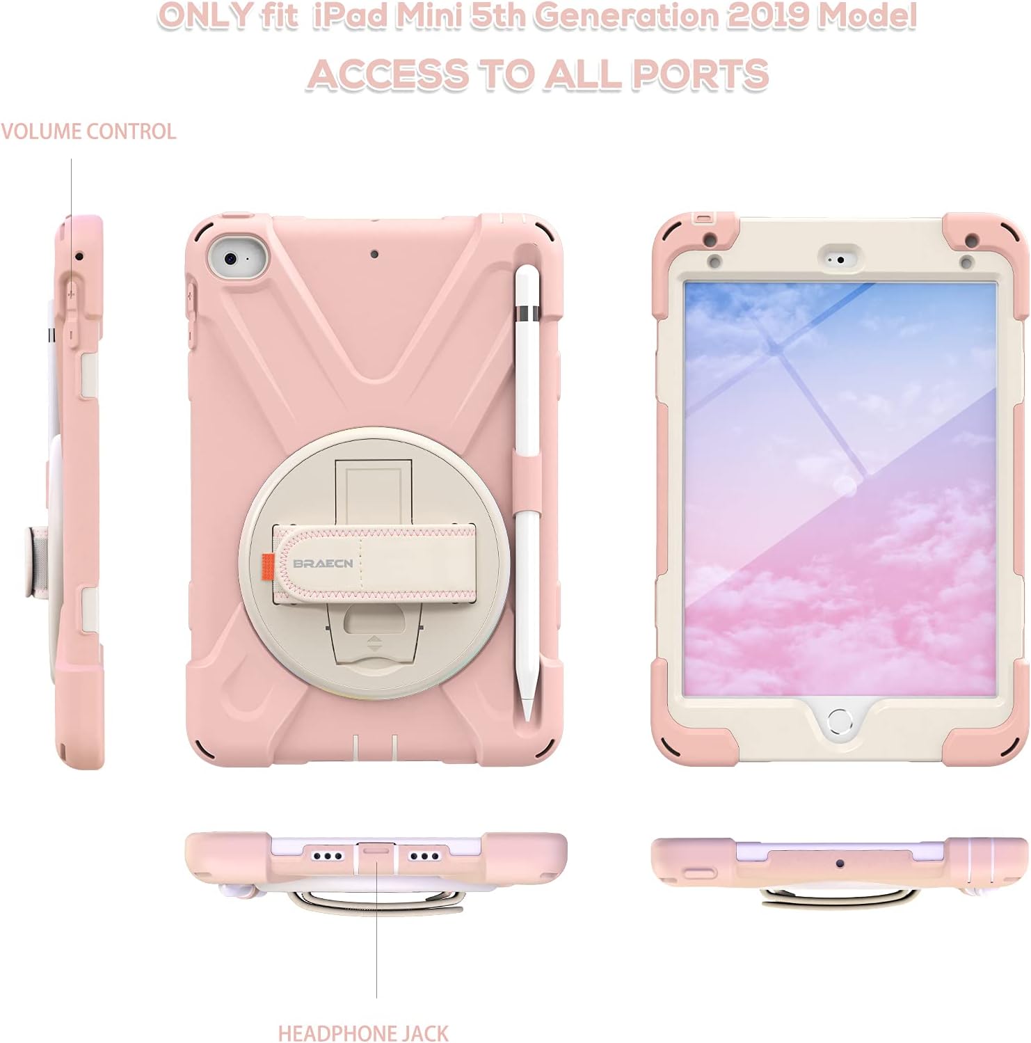 BRAECN iPad mini 5 Case,iPad mini 4 Case, Heavy Duty Shockproof Protective Rugged Case with Pencil Holder,Hand Strap,Kickstand, Shoulder Strap for iPad mini 5th/4th Generation 7.9 Inch for Kids