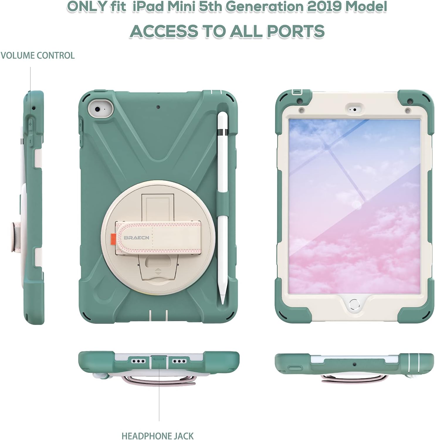 BRAECN iPad mini 5 Case,iPad mini 4 Case, Heavy Duty Shockproof Protective Rugged Case with Pencil Holder,Hand Strap,Kickstand, Shoulder Strap for iPad mini 5th/4th Generation 7.9 Inch for Kids