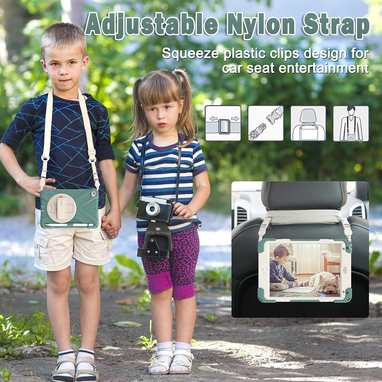 - Adjustable shoulder strap: By attaching strap to any two corners and adjusting to a comfortable length, ipad cover tablet can be carried in a landscape/portrait modes more securely during hiking, traveling or other outdoor activities. Also, strap allows to hang up your tablet behind car seat for entertainment for kids.