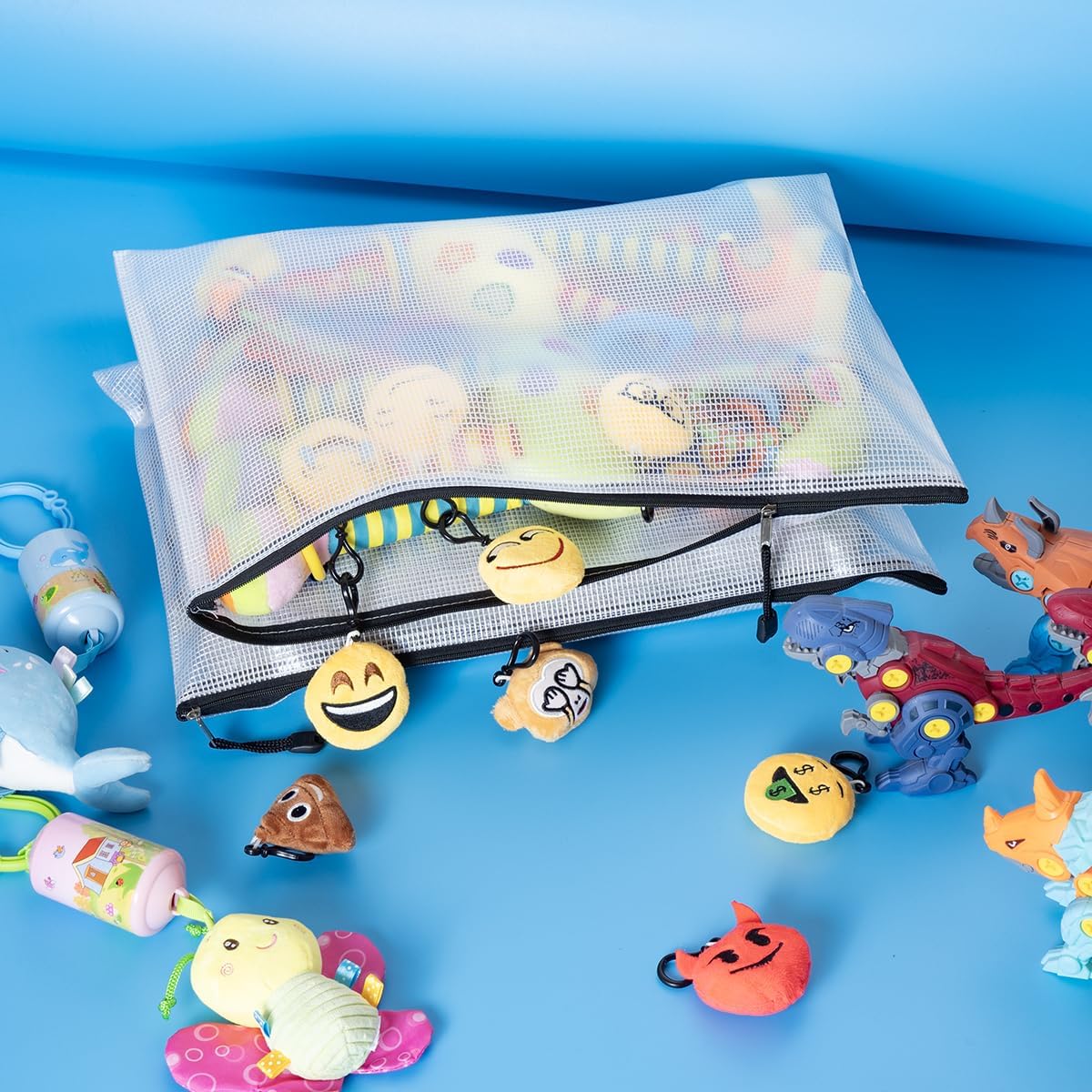 - Mesh pouches with translucent design. A solid PVC grid layout with moderate transparency could distinguish things in it easily, also protect your privacy at the same time