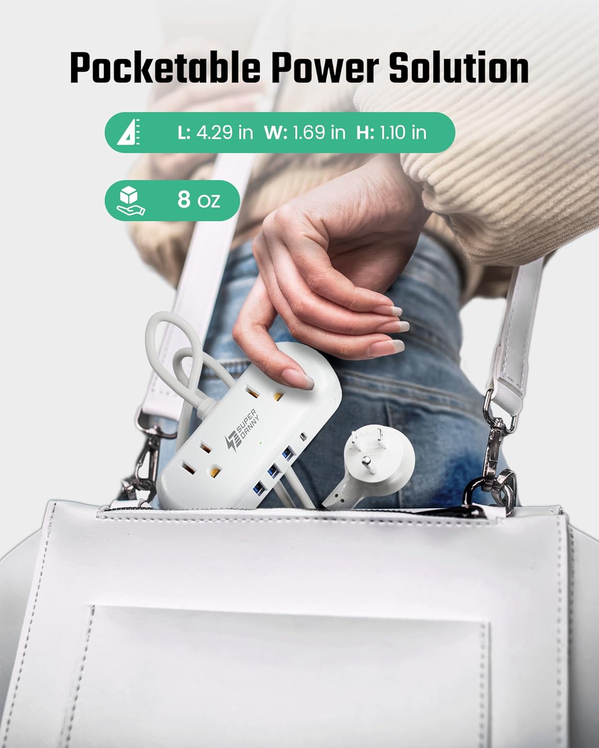 - 【Compact & Portable】SUPERDANNY travel power board has a mini size of 4.29 x 1.69 x 1.10 inches (weighs 8 oz), small enough to take to work or school with enough outlets to power up your electrical devices.