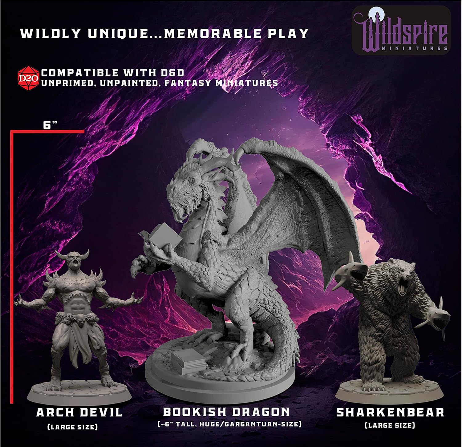 Fantasy Monsters & Bookish Dragon for DND Miniatures Unpainted Bulk 28mm-32mm Dungeons & Dragons Minis Pathfinder Figures Fantasy Unpainted Tabletop RPG Miniature Starter Set for D&D
