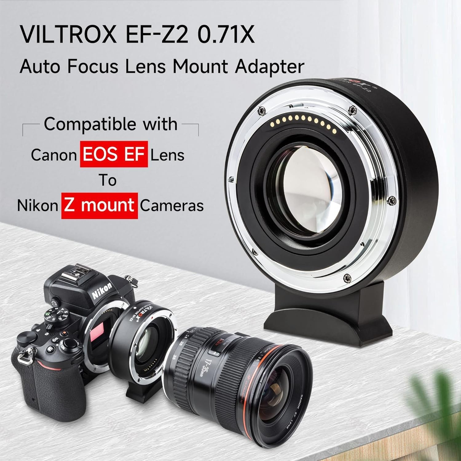 - Wide Compatibility: VILTROX EF-Z2 0.71x Speed Booster is designed to compatible with Canon EF-mount lenses to be used on Nikon Z-mount mirrorless cameras,such as Z5 Z50 Z6 Z6II Z7 Z7II.