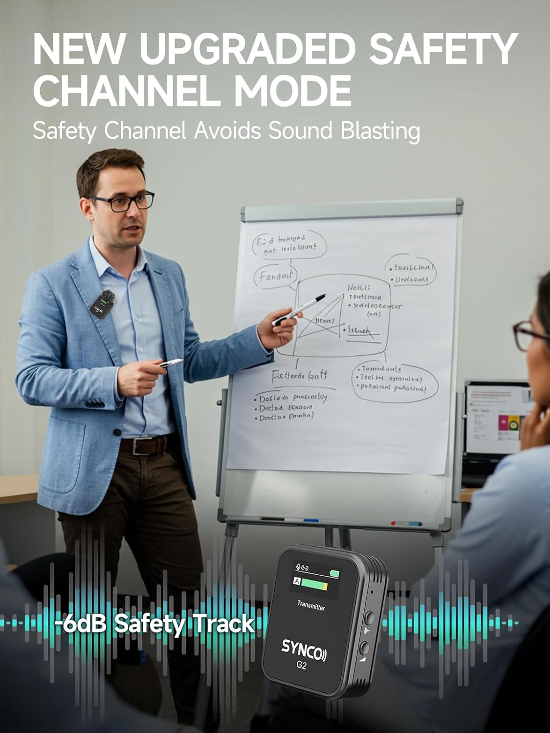 - Dual-Channel System & Mono/Stereo/Safety Mode: SYNCO G2(A2) wireless lavalier microphone is capable of handling 2 transmitters and 1 receiver simultaneously, and features the ability to switch between Mono, Stereo or Safety Channel outputs mode, easy for post processing, ideal for face-to-face interviews, Youtube video and other two-person shoots. Especially the newly upgraded safe mode can effectively prevent the whistling sound, will not let the recording abandoned