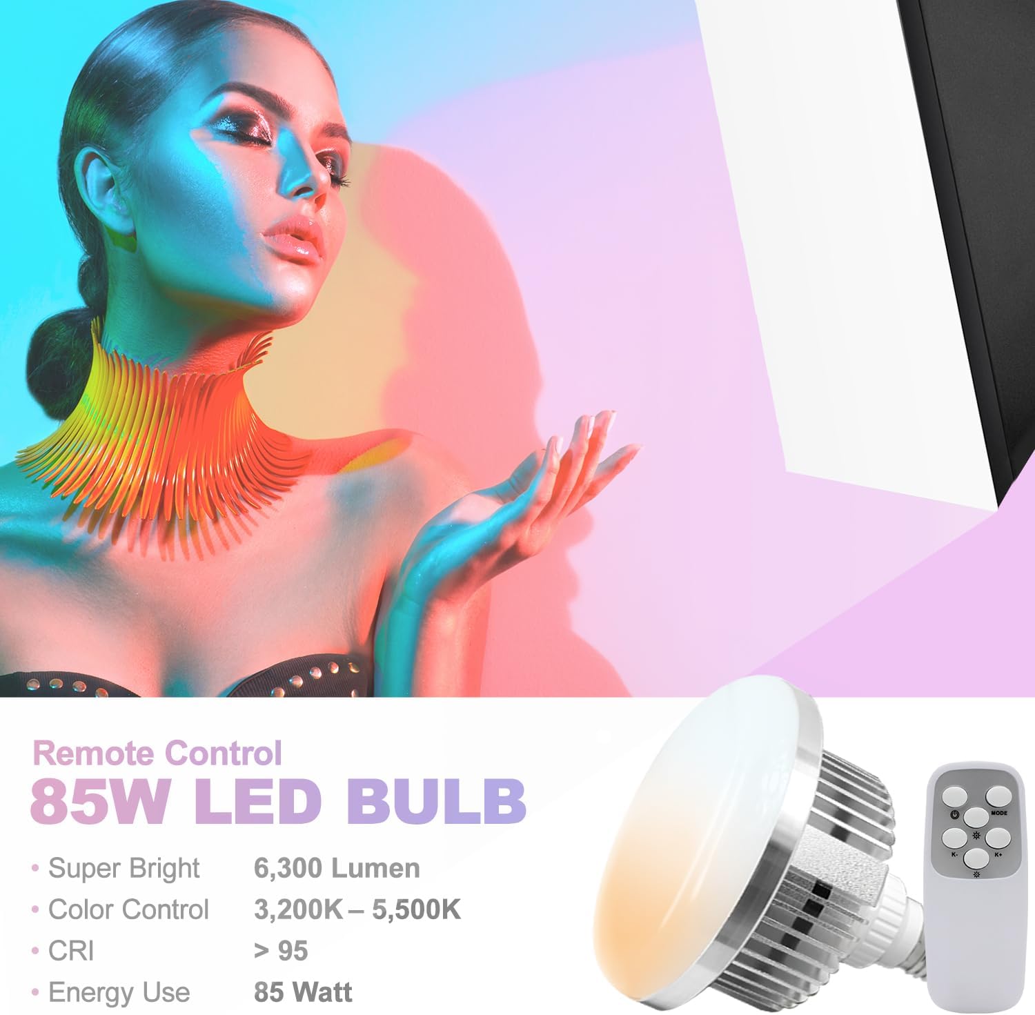 - 🔅 【LED Remote Bulb 1】 6,300 Lumen Super Bright LED 85 Watts / Quick & Easy Remote Control / 3,200K - 5,500K Color Temperture Control / 95 > Color Rendering Index / Minimized Light Loss, Maximized Efficiency