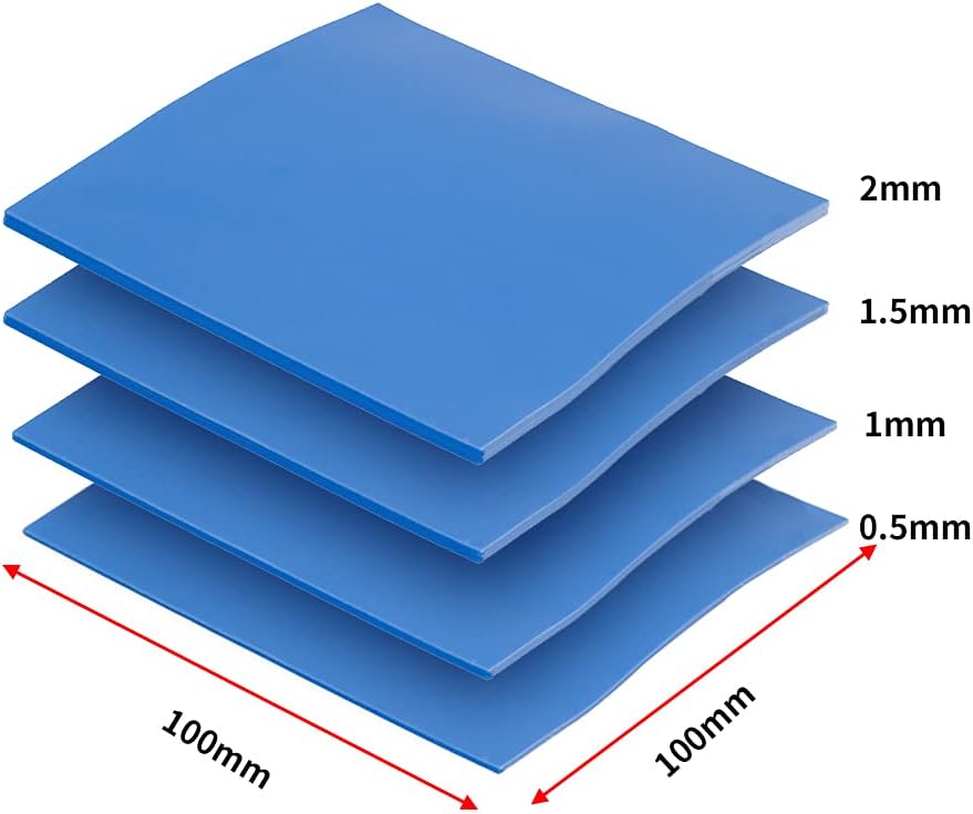 - Convenient & Affordable - Dimension 100x100mm, the thermal pads can be cut freely according to your needs. 0.5mm,1mm,1.5mm,2mm/set can meet different needs.