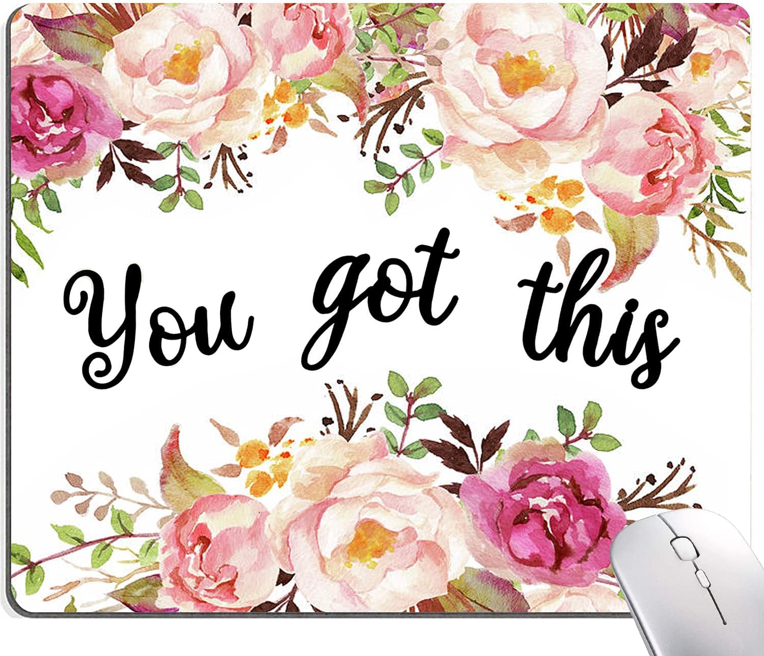 Hokafenle Mouse Pad Motivational, Cute Floral Mouse Pad with Inspirational Quote, You Got This Mousepad Design, Mouse Mat Square Waterproof Non-Slip Rubber Base Mouse Pads for Office Home Laptop