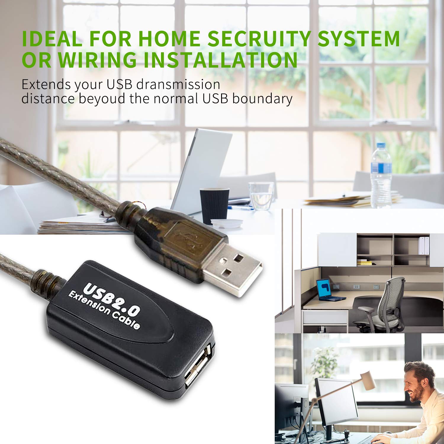 - 【FLEXIBLE&DURABLE】: With metal wire braid inside, the cable is flexible and resistant to pull and drag. The gold-plated connectors can bear more than 10000 times plug. The ABS and PVC case is anti-abrasive. UNIVERSAL COMPATIBILITY: The USB active extender is broadly compatible with Windows, Mac, Linux, Chromebook, and USB 2.0 peripherals including hard drives, USB hubs, mice, keyboards, flash drives, printers, and more.