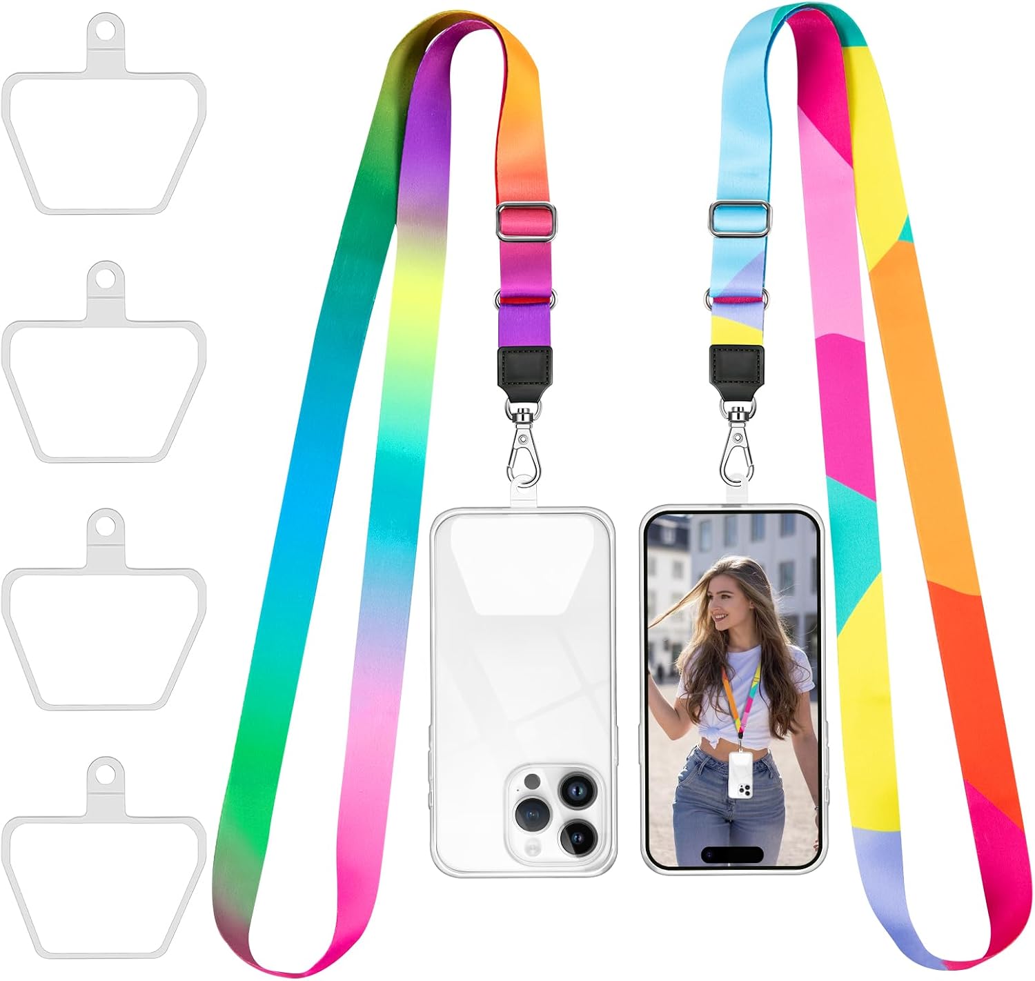 Doormoon Phone Lanyard, Universal Phone Charm Adjustable Neck Straps for Phone Case Keys ID Badges Compatible with iPhone, Samsung, Motorola, LG & Most Smartphones, 2 Pack, Rainbow