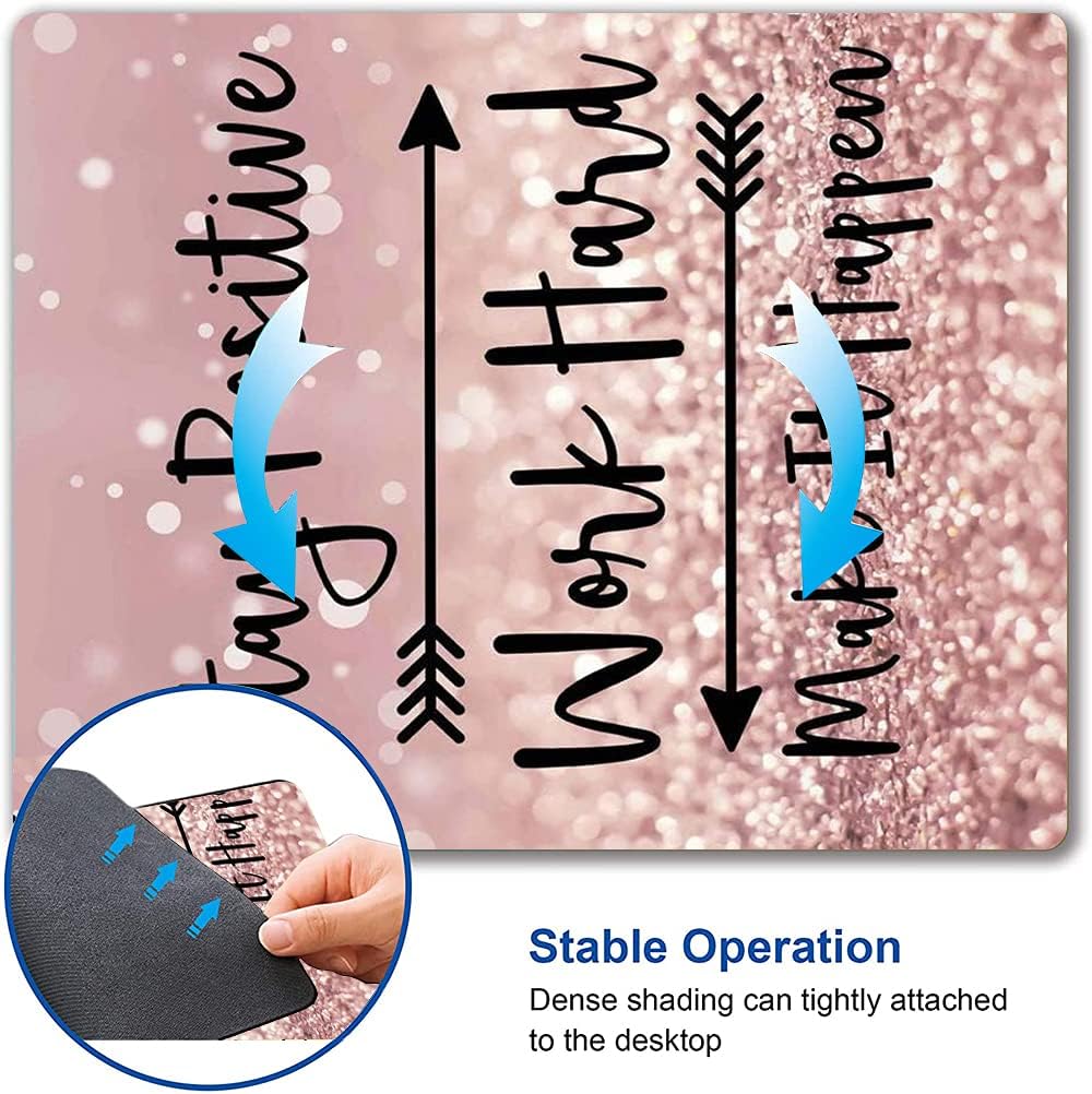 Inspirational Quote Mouse Pad, Stay Positive Work Hard and Make It Happen Motivational Pad for Women, Square Waterproof Non-Slip Rubber Base MousePads Office Laptop