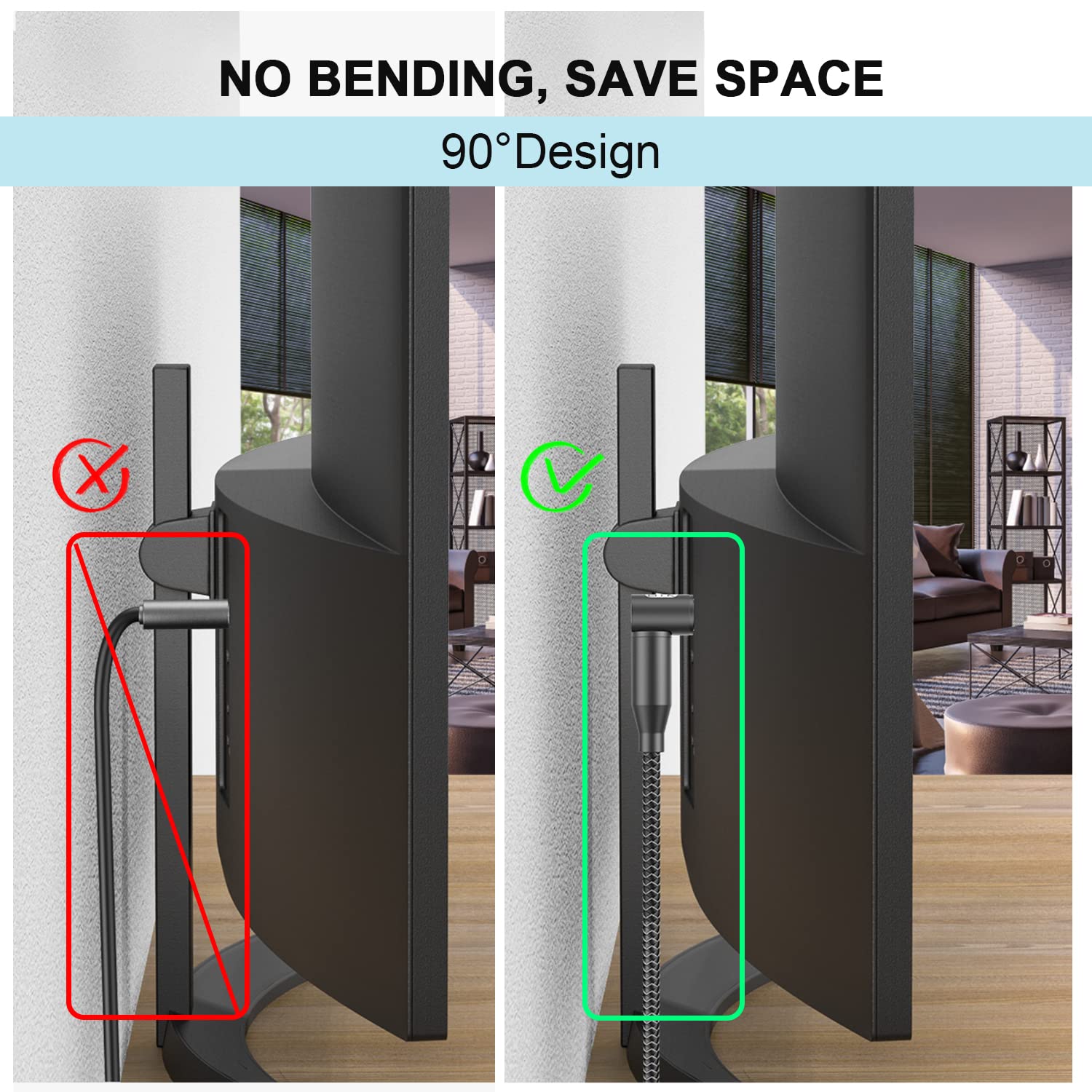 - EMK 360° Swivel Adjustable Right-Angle Optical Cable - Specially designed for wall-mounted setups, our innovative rotating connector outperforms standard 180° cables by providing unparalleled flexibility in tight spaces between walls and devices. The precision-engineered swivel mechanism ensures perfect alignment while maintaining optimal digital audio transmission for your home theater, soundbar, or TV.
