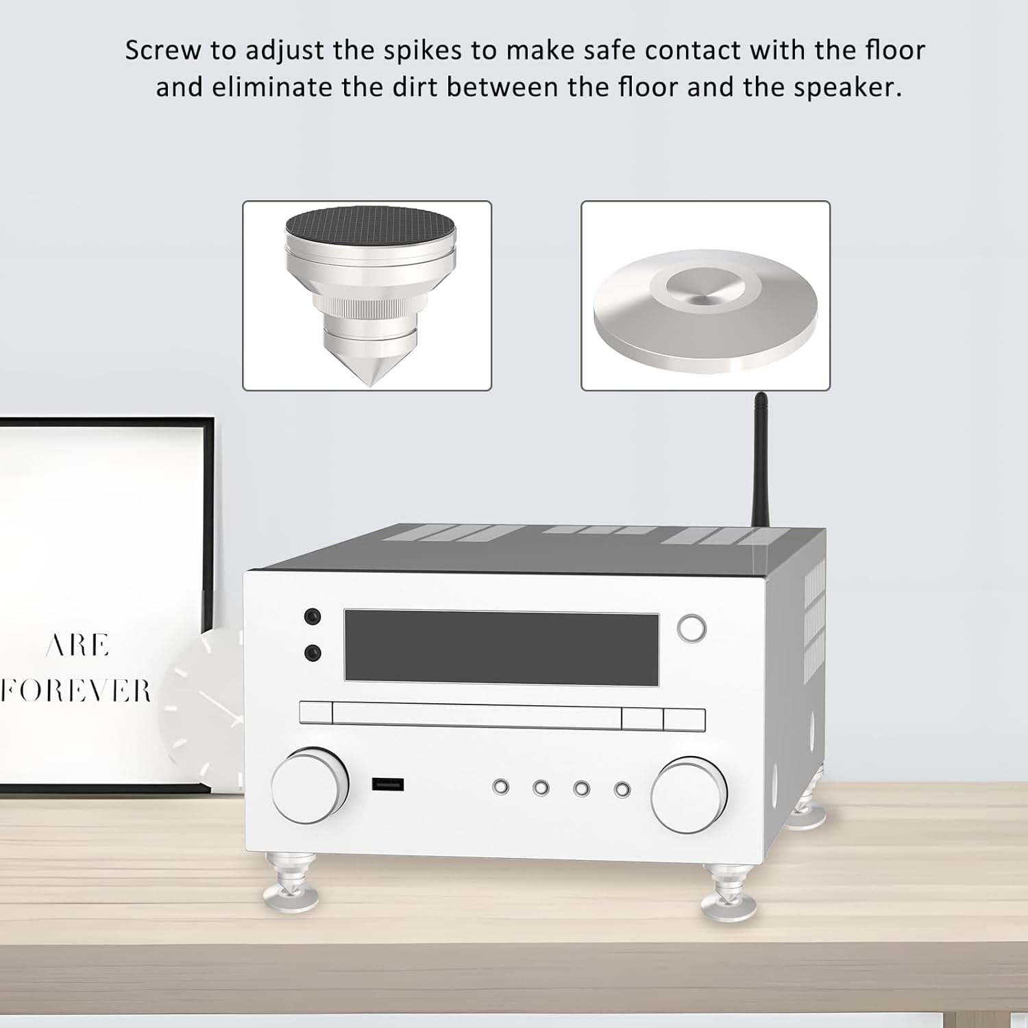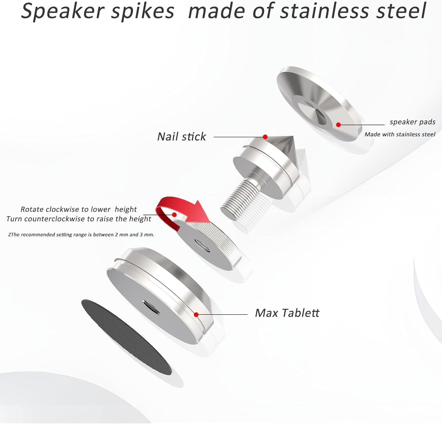 - ❖Achieve Tighter and Cleaner Sound Bass---The CNC machined adjustable speaker isoltions feet can separate audio component from vibration, absorbing the harmful vibration from the supporting surface and internal reflection and eliminating the pollution between the ground and the speaker, resulting in tighter and cleaner sounding bass.