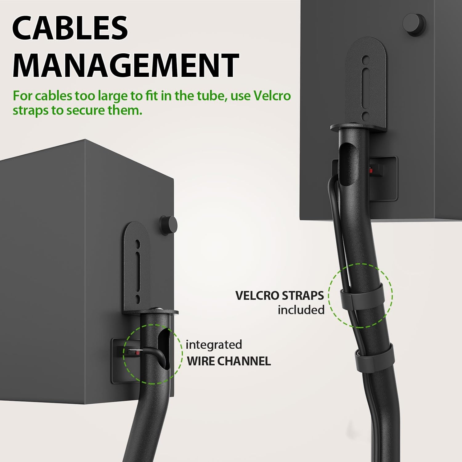 - Cable Mangement:The floor speaker stands keep cables clean and organized with internal channel ( 0.6β W x 1.2β H) for a clean and tidy appearance. Or external velcros in package to help run the cable around the stand tube.Applicable Speaker Screws: M4X30mm Bolt, M6X30mm Bolt