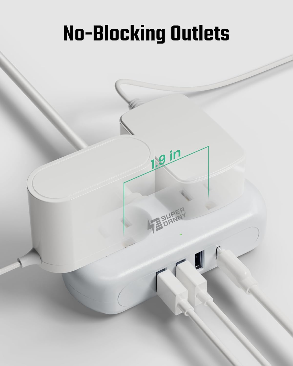 - 【Compact & Portable】SUPERDANNY travel power board has a mini size of 4.29 x 1.69 x 1.10 inches, small enough to take to work or school with enough outlets to power up your electrical devices.