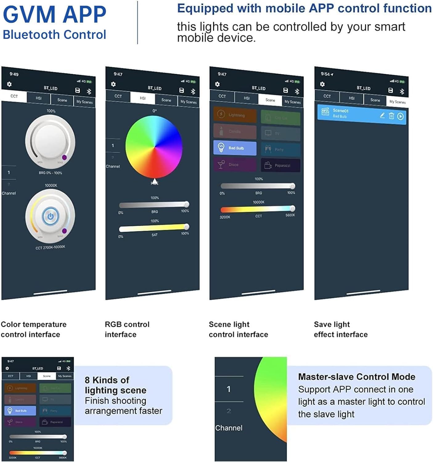 - 📱 【APP Bluetooth Wireless Control System】 – Take full creative control with two operation methods: adjust settings directly through the intuitive LCD display with knobs or connect via the GVM App (iOS/Android) for wireless Bluetooth control. Easily fine-tune color temperature (2300K–5600K), brightness, HSI, and scene modes from your smartphone, giving you more flexibility and efficiency during professional photo or video shoots.