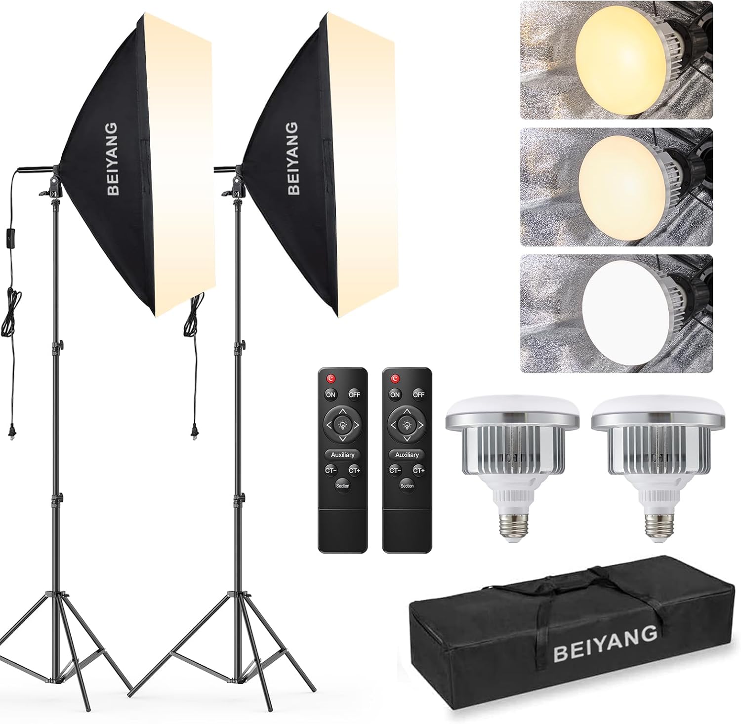 BEIYANG Softbox Lighting Kit, 2x20''x28'' Photography Soft Box with 2 pcs 85W 6000K E27 LED Socket LED Bulbs, Studio Lights for Photography/Video Recording/Live Streaming