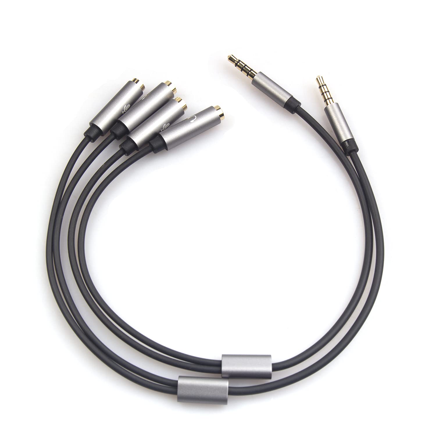 - 【Stereo Audio Splitter】1 x 3.5mm male jack (TRRS) plug to 2 x 3.5mm female jack plug (TRS),Split Headphone and Microphone jack