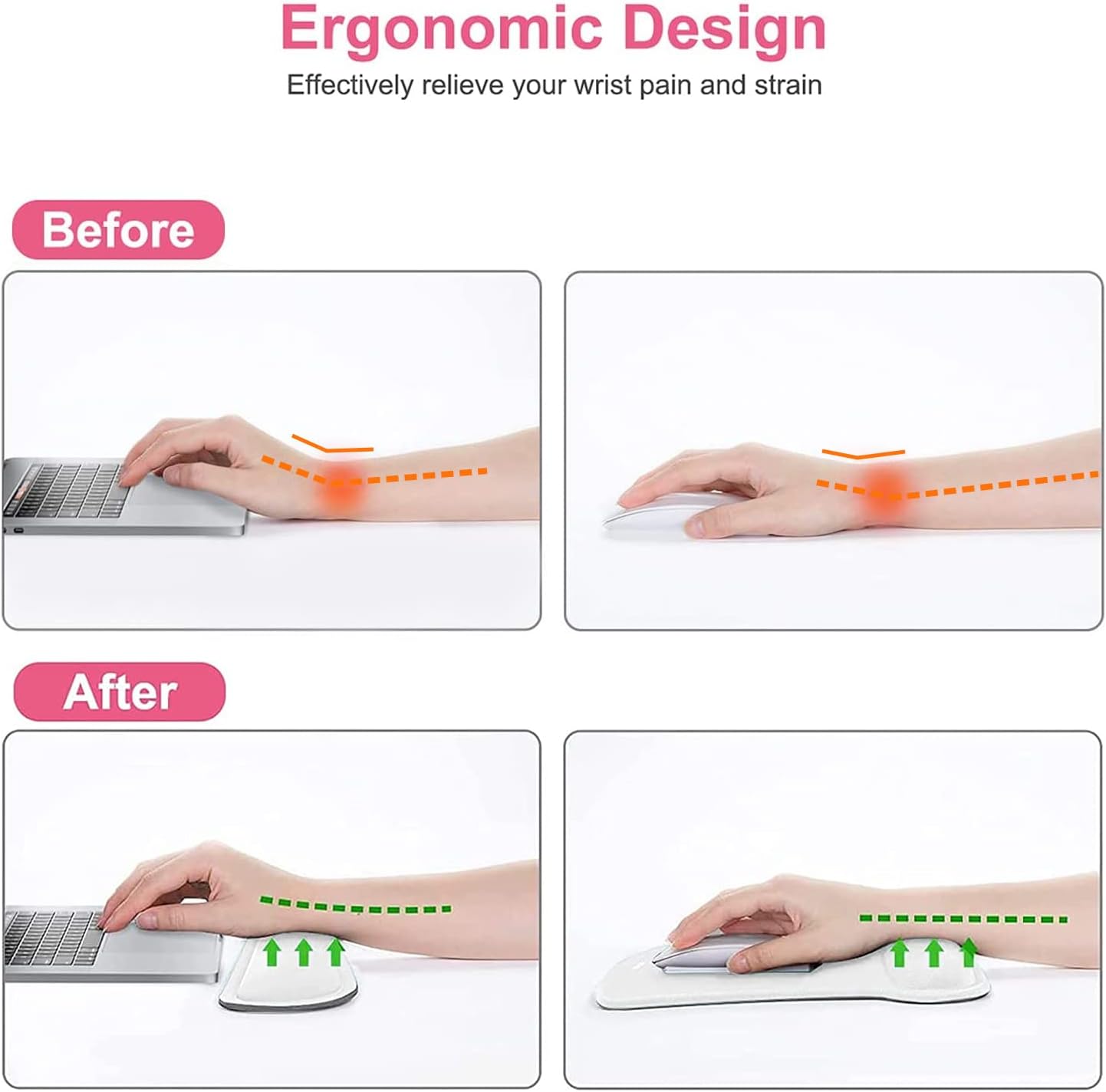 - Ergonomically designed with breathable/durable neoprene cloth and raised memory foam. Efficient for easy typing & pain relief. Offers soft support to relieve pressure and pain of your wrist, keep your wrist in a natural and comfortable state.