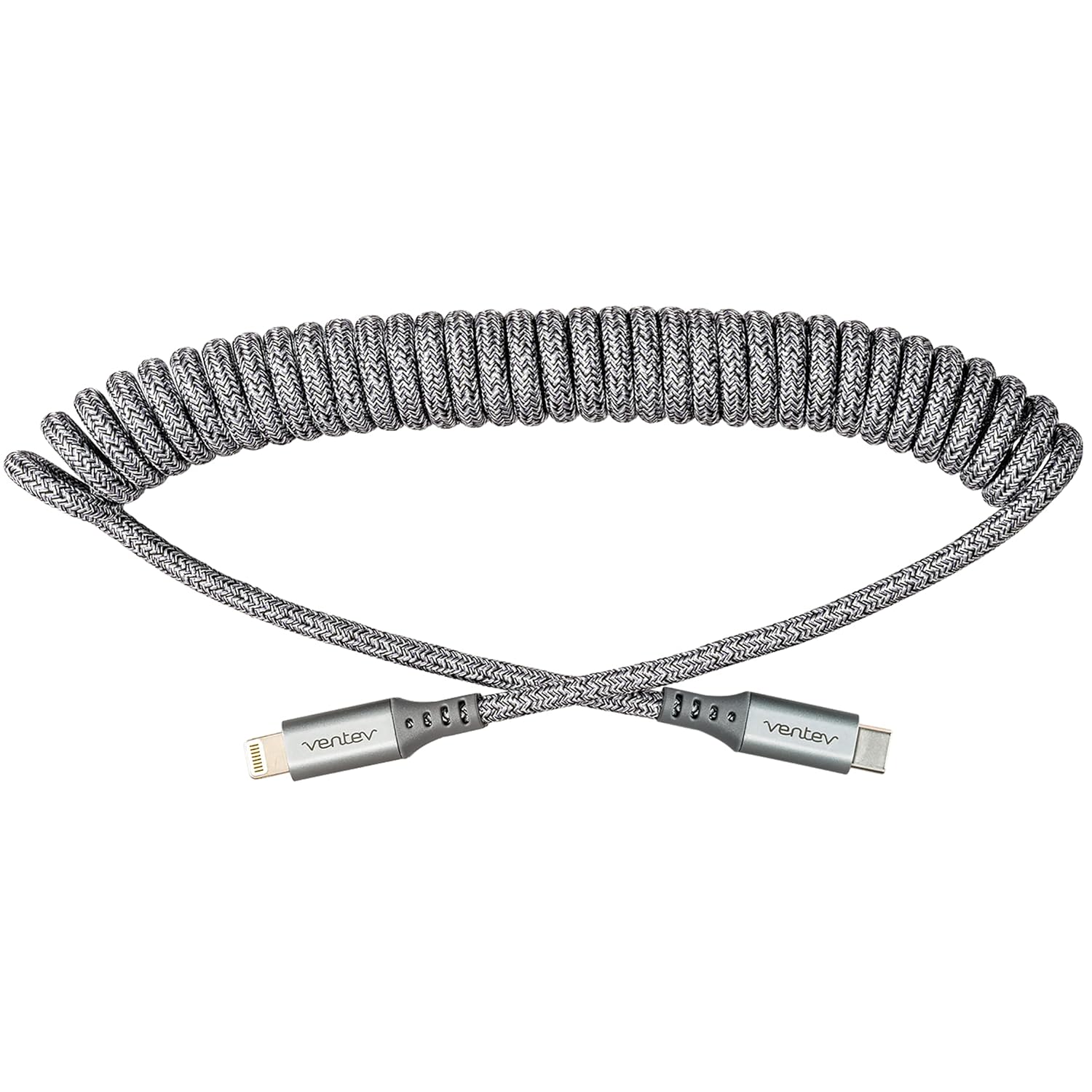 Ventev - Helix 3ft Expandable iPhone Cable | Fast Charging USB C to Apple Lightning Cable | Compatible with iPhone 14/13/12/11 | Coiled MFi Certified iPhone Charger Cord - Gray