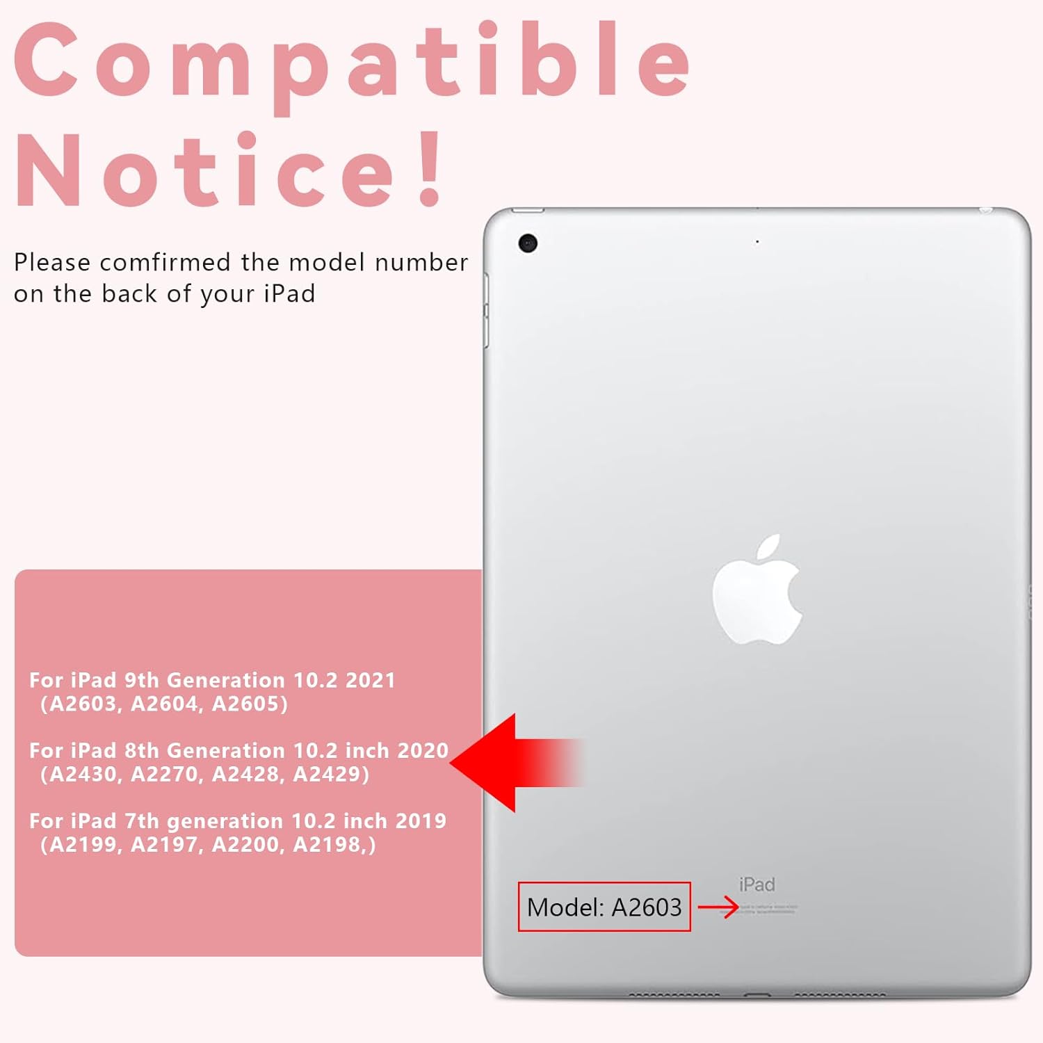 - Case with Keyboard foriPad 10.2 :The keyboard case is compatible with new iPad 10.2 9th Gen 2021 (Model Number: A2603, A2604, A2605)/8th Gen 2020 (Model Number: A2270, A2428, A2429)/7th Gen 2019 (Model Number: A2197, A2200, A2198). Please check your iPad model before purchasing. Our keyboard case for ipad provides a range of features that enhance both functionality and protection for your iPad