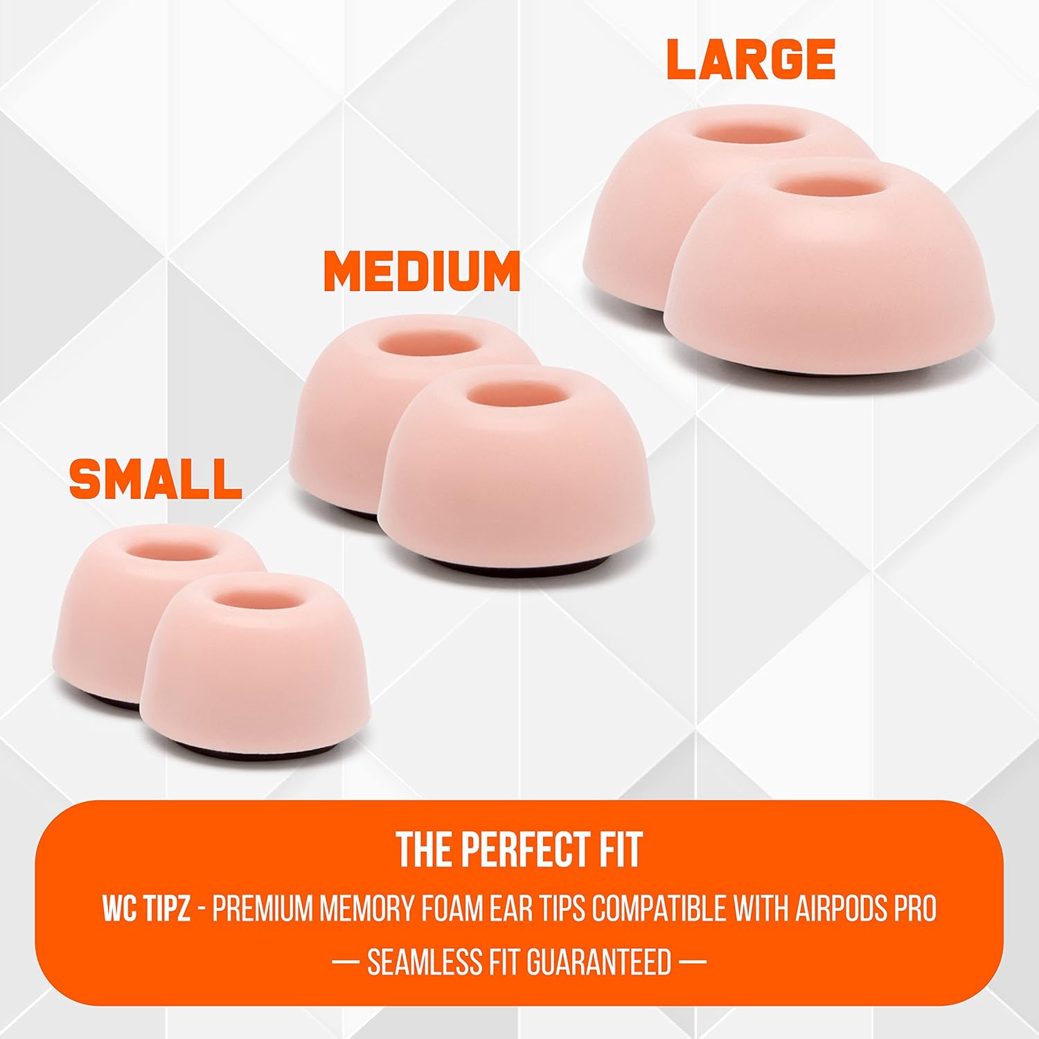 - Secured Fit: WC TipZ Memory Foam Ear Tips for Airpods Pro were designed to securely fit in any sized ear. Every package comes with sizes Small, Medium, and Large perfect for even the most uniquely shaped ear canals.