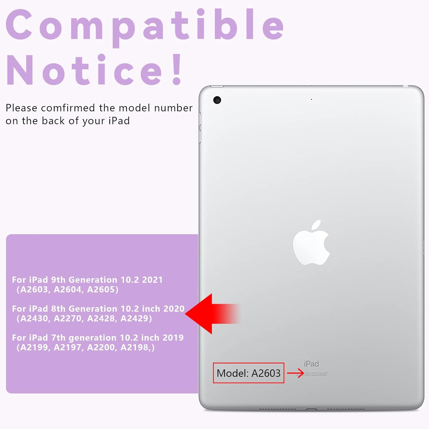 - Compatible Devices : For iPad 9th Generation 10.2 2021-A2603, A2604, A2605, For iPad 7th generation 10.2 inch 2019-A2199, A2197, A2200, A2198,For iPad 8th Generation 10.2 inch 2020-A2430, A2270, A2428, A2429; For iPad 9th Generation 10.2 2021-A2603, A2604, A2605, For iPad 7th generation 10.2 inch 2019-A2199, A2197, A2200, A2198,For iPad 8th Generation 10.2 inch 2020-A2430, A2270, A2428, A2429;