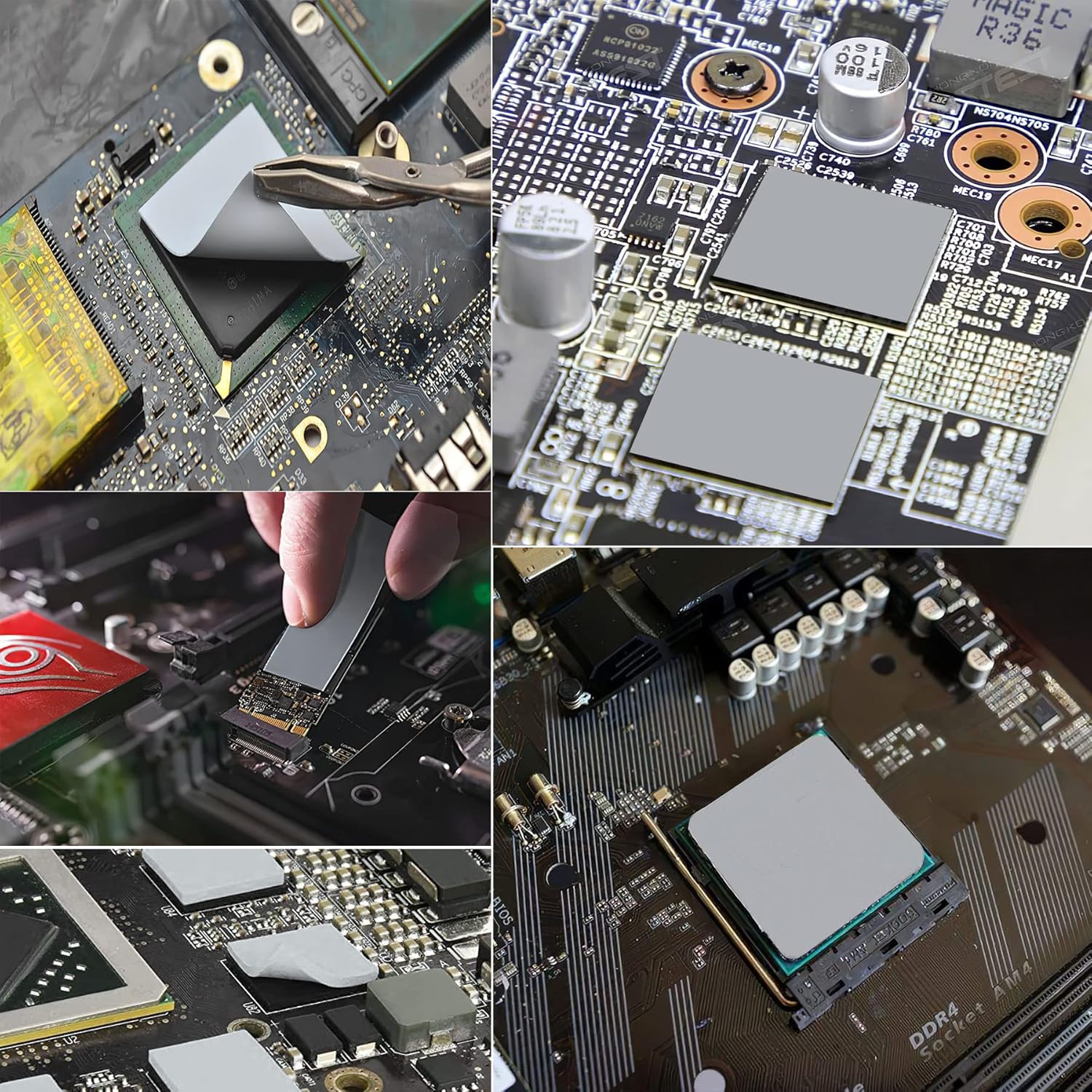 - β WIDE APPLICATION: The GPU thermal pad is used in places where it is not possible to use thermal paste, Achieve the best cooling effect. Fits for Control board, game consoles, motor, electronics, micro controllers, auto mechanics, computer host, PCB surfaces, VGA cards, laptop, DVD, VCD, LID, Set-top box, LED IC SMD DIP, memory ICs and any cooling modules