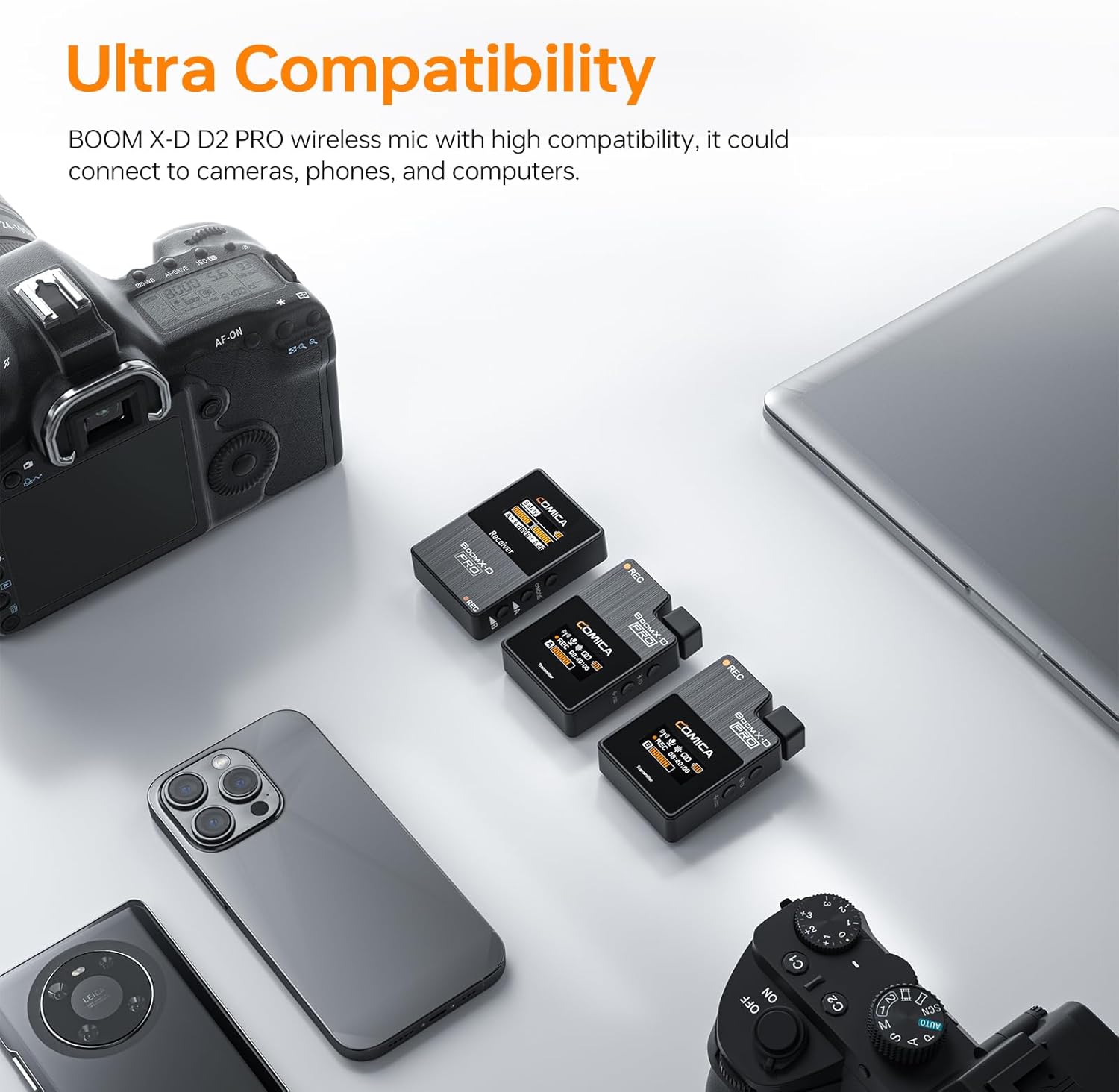 - Digital/Analog Output Mode: Comica BoomX-D2 PRO can be switched between two Digital/Analog Output Modes. It has a wide range of applications, universal for cameras, Smartphones, and Devices with 3.5mm and USB Interfaces. Have great flexibility to meet your needs on various occasions like Meeting Video Recording YouTube Podcast Vlog etc.