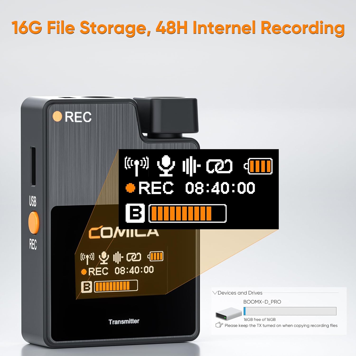 - 16GB File Storage, 48H Internal Recording: 16GB of internal storage can handle up to 48 hours of audio without compression. It can record separately and output audio files quickly to a computer using a data cable.