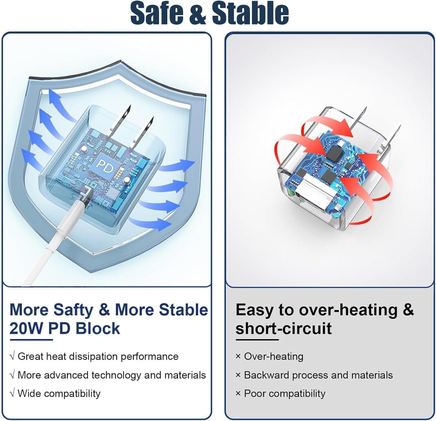 - ăSafety iPhone 16/15 charger fast chargingăOur USB C iPhone 16 charger fast charging prioritizes safety with its comprehensive protection system, guarding against over-voltage, over-charge, and over-heating. Equipped with advanced smart chips, it intelligently adjusts the current to match your device's needs, guaranteeing a rapid and secure charging process for your iPhone 16/15/iPad Pro.