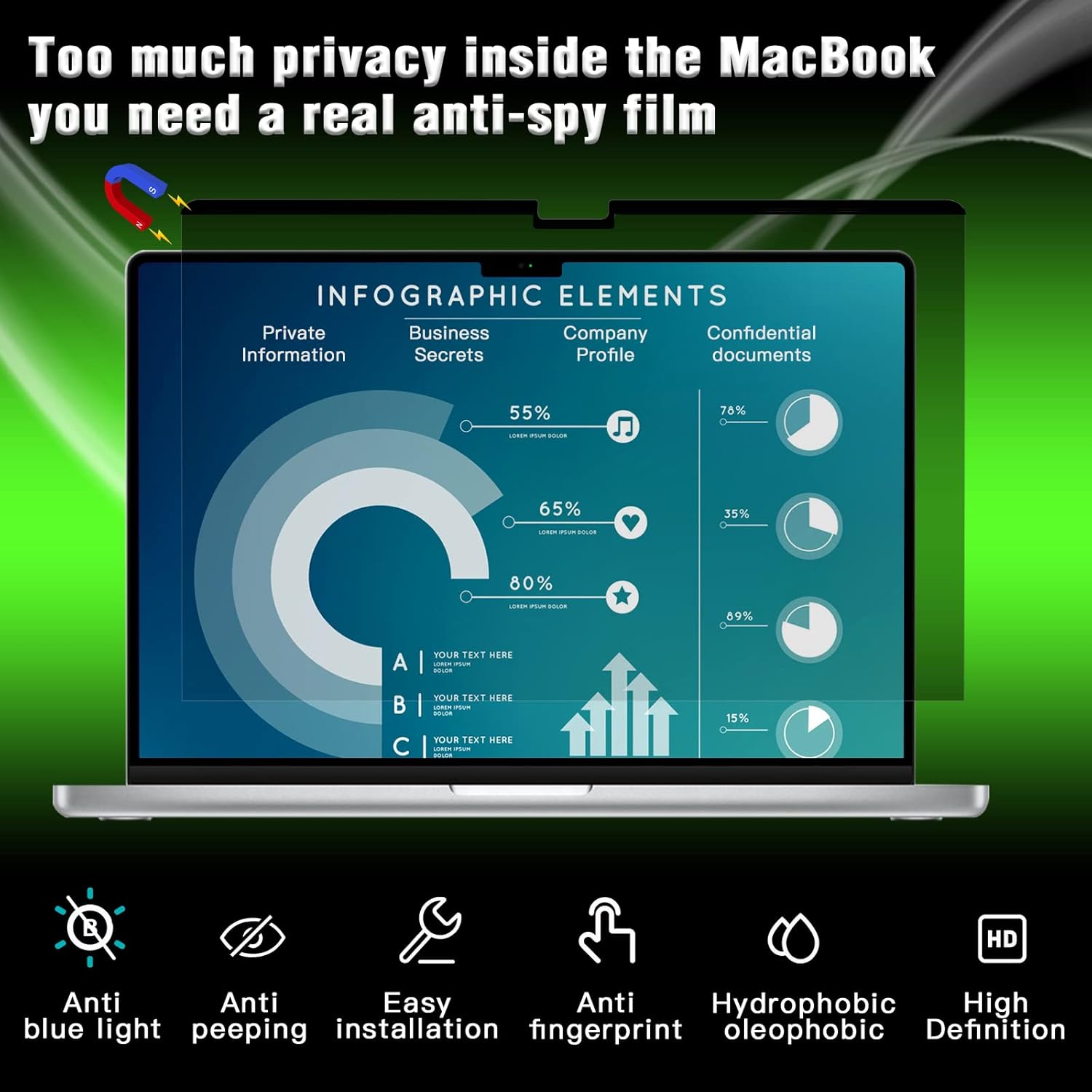 - [macbook pro 14 m1 privacy screen]- removable macbook pro 14 inch privacy screen protector Limits viewing angle to 30 degrees, data is visible only to persons directly in front of the monitor,while prying eyes beside you see only a black screen.