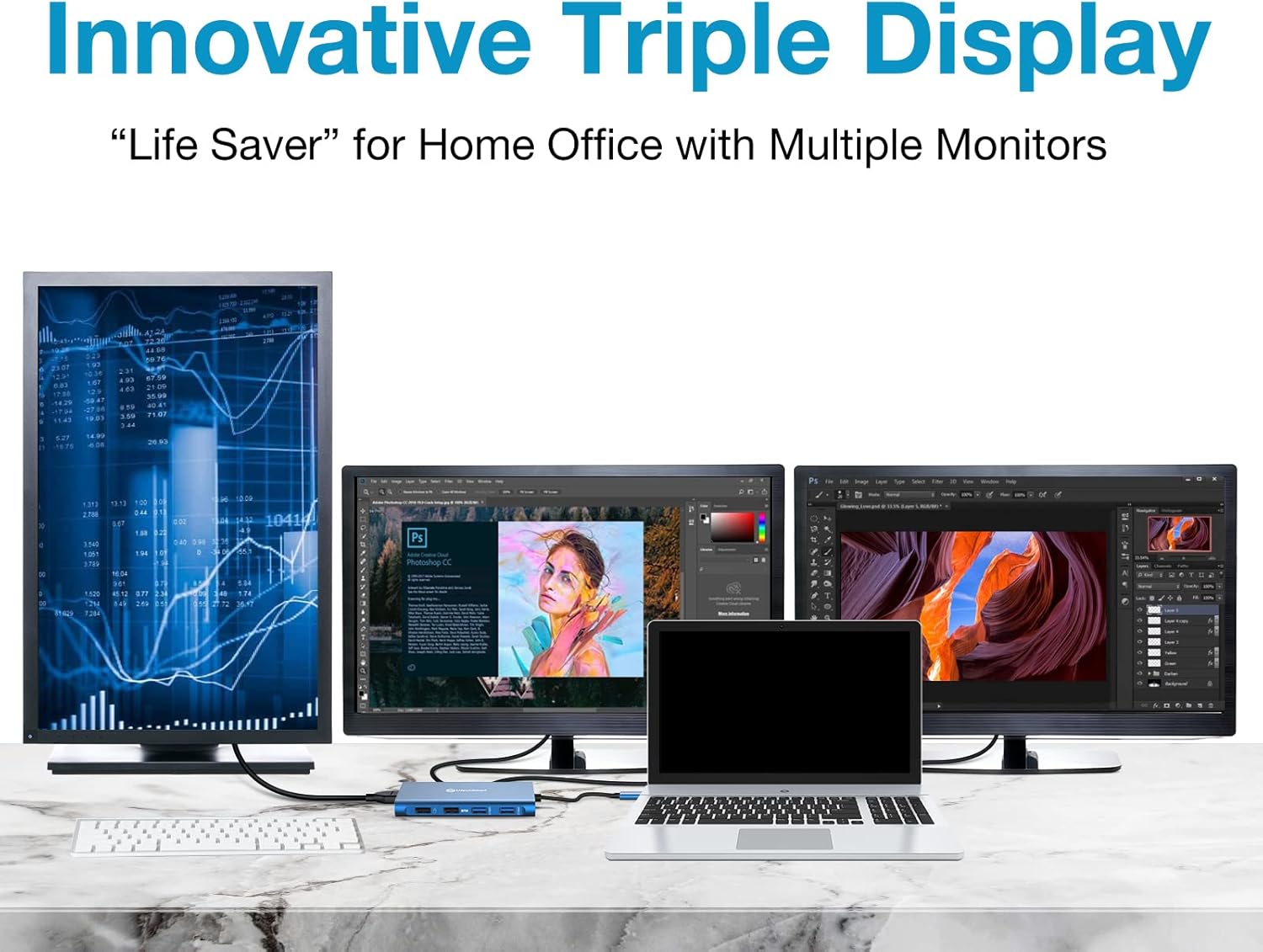 UtechSmart 11 in 1 Docking Station, Triple Monitors USBC Laptop Docking Station with 2 HDMI, VGA, PD3.0, SD TF Card Slot, 4 USB Ports USB-C Adapter Compatible for MacBook & Windows(Blue)