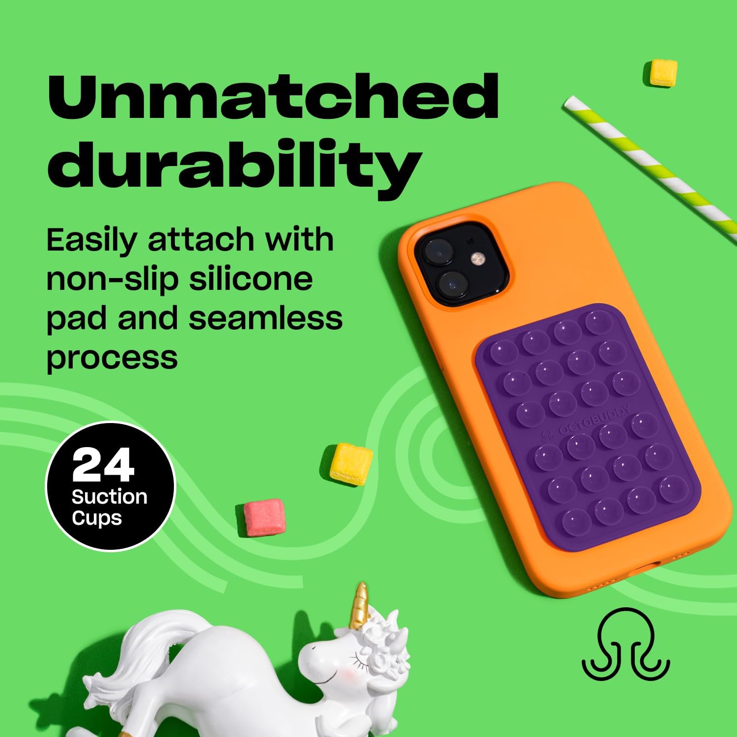- Peel, attach, stick and enjoy: Quick, hassle-free attachment thanks to its non-slip silicone pad with adhesive backing and its seamless application process