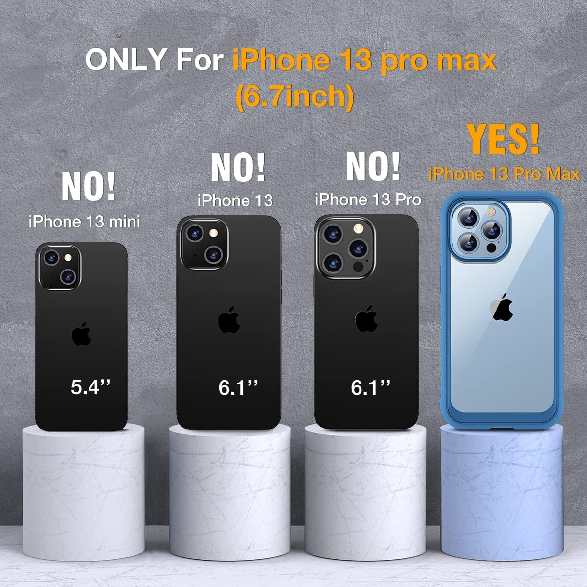 - [360Β° Full-Body Rugged Protection] Full-body protective case for iPhone 13 pro max tested to survive as many drops as a military standard. Flexible TPU materials and Tri-layer structures absorb and deflect impact while block dirt, dust. Raised lips around the camera and the screen for added protection against untoward scratches.