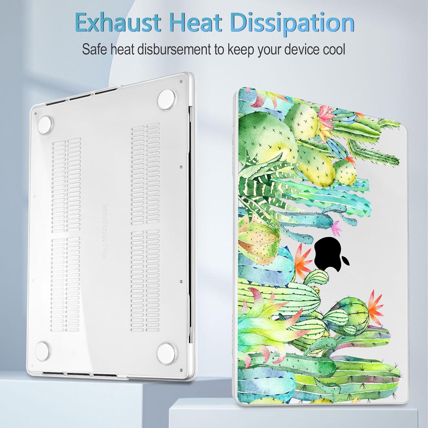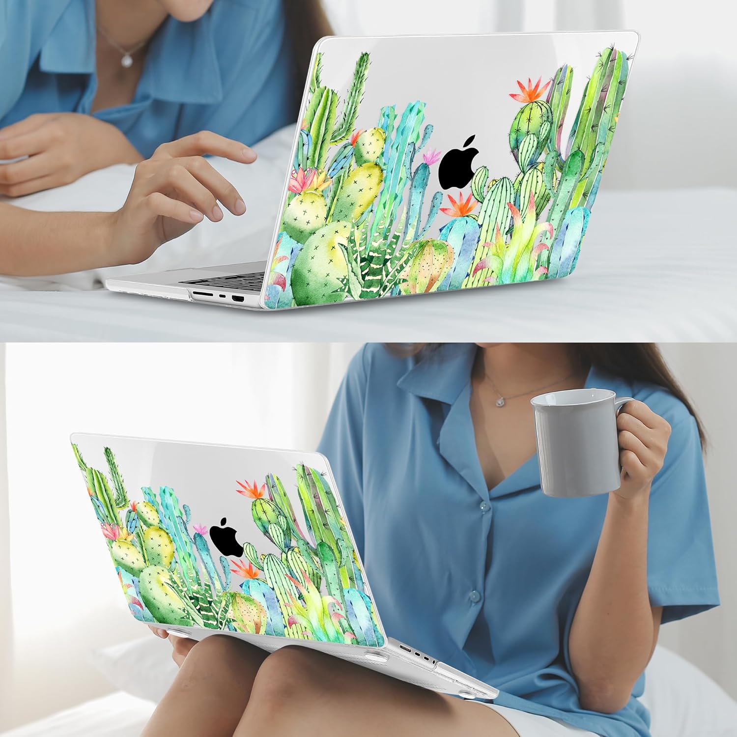 Mektron Case for MacBook Pro 16" M4 A3403 A3186 M3 A2991 M2 A2780 M1 A2485 (2021/2023/2024) Pro/Max with Touch ID, Hard Shell Plastic Laptop Cover Keyboard Cover Screen Protector, Watercolor Cactus