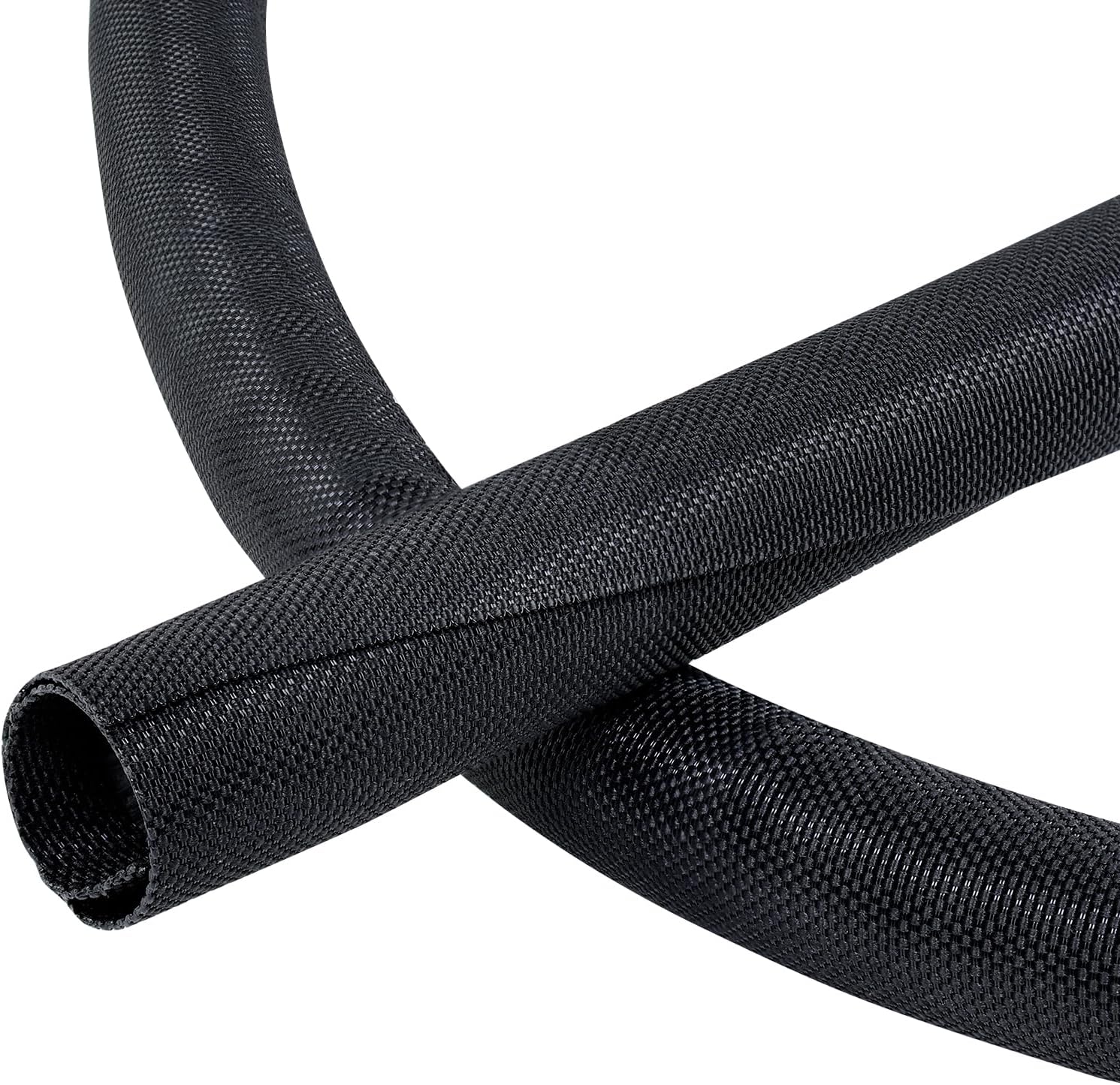 Black Braided Cable Management Sleeves Wire Loom Tubing Cord Protector Self-Wrapping (3/4"-20feet)