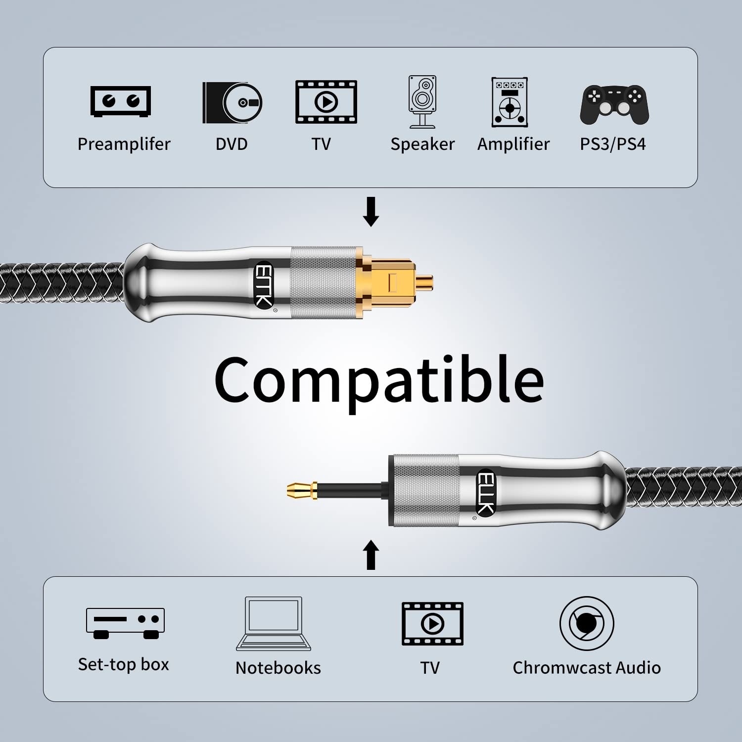- Cable Type : Mini Toslink to Toslink, optical cable, optical cable for soundbar to tv, opticdigital optical audio cableal audio cable Mini Toslink to Toslink, optical cable, optical cable for soundbar to tv, opticdigital optical audio cableal audio cable