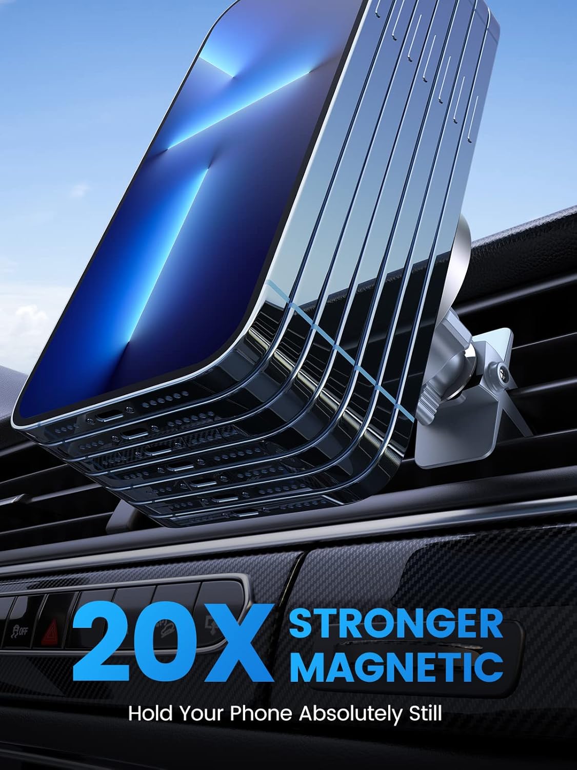 - [Adjustable Cell Phone Holder Car As You Wish] This car vent mount pro with magsafe has a highly flexible 360° rotation ball-joint, provides infinite viewing angles. You can quickly switch portrait to landscape for the best angle for safe driving. Making calling and GPS navigation more convenient than ever.