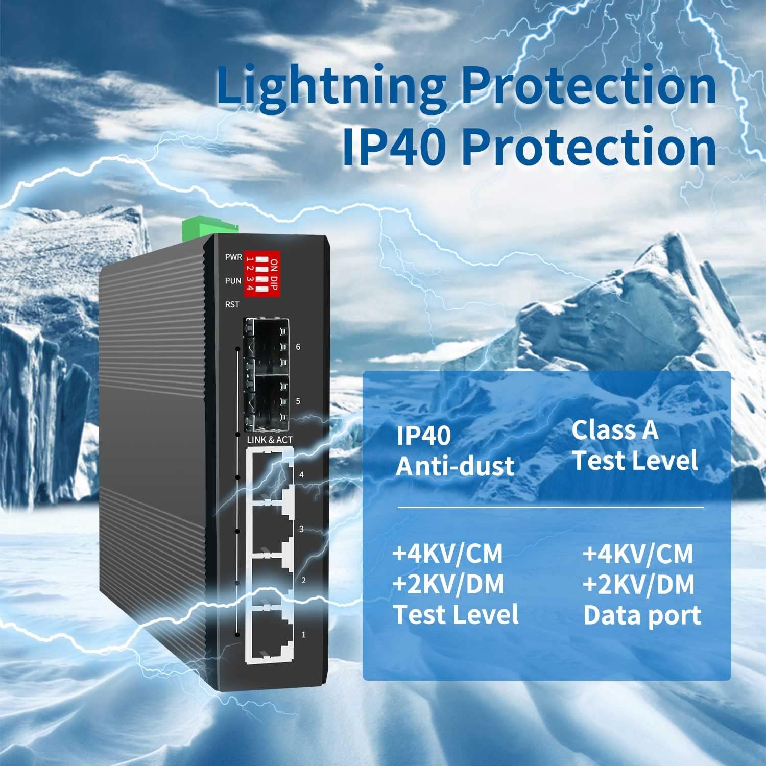 4-Port Hardened Industrial Gigabit 2+ Managed DIN-Rail Switch, 4x10/100/1000 Base-TX +2x1000Base-FX SFP 6X, Network Ethernet Gigabit Not with PoE+ Switch