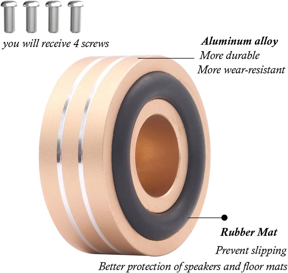 - ① Advanced Acoustics: The Tertullus 4 Pcs Speaker Feet Spikes Isolation Turntable Feet Spike set is designed to enhance the acoustic quality of your Hi-fi equipments. The isolation feet can effectively isolate subwoofers, speakers, and other audio equipment from the floor, reducing vibrations and improving the sound quality.