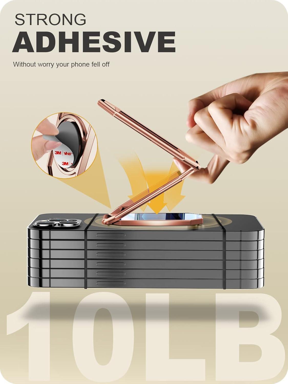 - ใ2025 New Version 3M Tape to Guard Your Phoneใ This iphone kickstand employs 2025 new version 3M tape. This strong tape ensure it sticks tightly to your phone and hold it strongly to reduce the risk of dropping it from your hand accidentally. As usual, keep your collapsible iphone ring holder grip functions like text or selfie with one hand. It will take 100% effect after 48 hours in the first stick and it will leave no adhesive residue on your phone after you removed it.