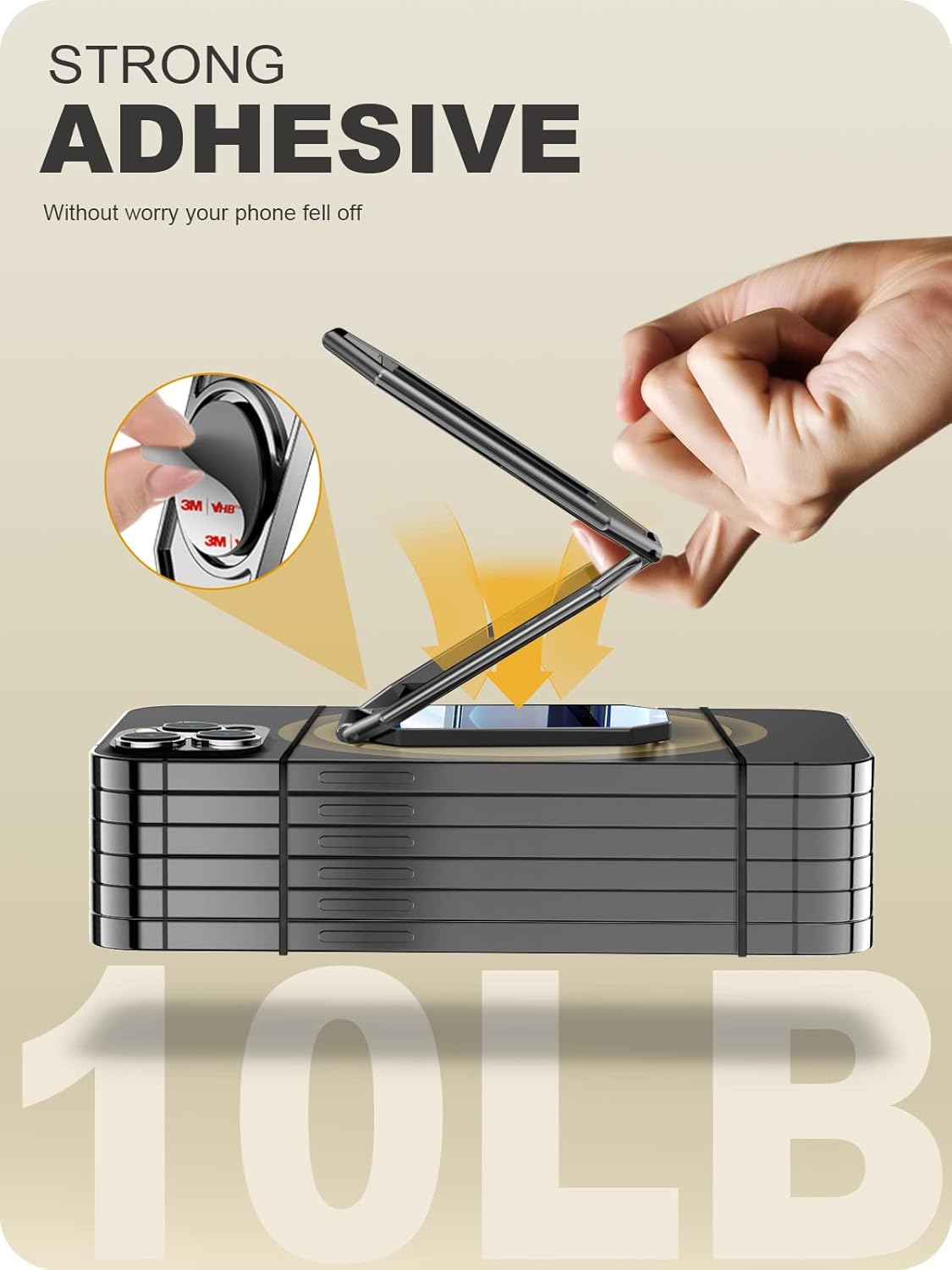 - ใ2025 New Version 3M Tape to Guard Your Phoneใ This iphone kickstand employs 2025 new version 3M tape. This strong tape ensure it sticks tightly to your phone and hold it strongly to reduce the risk of dropping it from your hand accidentally. As usual, keep your collapsible iphone ring holder grip functions like text or selfie with one hand. It will take 100% effect after 48 hours in the first stick and it will leave no adhesive residue on your phone after you removed it.