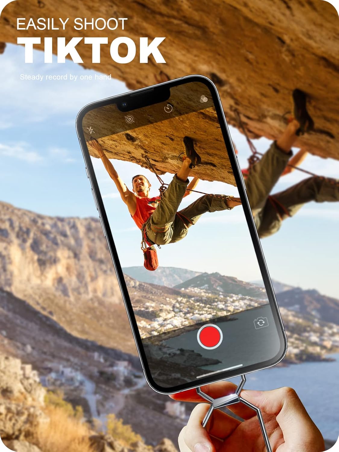 - ใHold Your Phone Stably in Various Angle by 2 Rotational Arms & Baseใ This phone gripper adopts 2-jointed 180ยฐadjustable arms and base offer you 360ยฐrotation. You can hold your phone at any angle and height as you like. This phone stand can help you to shoot the Vlog or TikTok by holding it horizontally or vertically with one hand. Working as fodable phone grip or handy collapsible finger holder if you'd like to set it on a desk to meet, cook, read, chat, dinner, exercise, and watch a video.